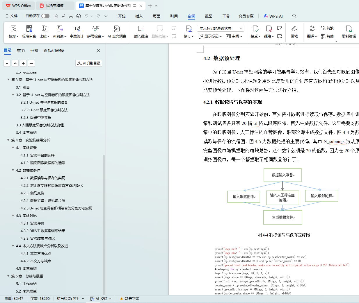 在分割眼底图像之前,本文首先对原始眼底图像进行数据的读取与保存,通过直方图均衡化和伽马变换对数据进行预处理,并使用随机切片法对数据进行扩增。之后采用U-net眼底图像分割方法和空洞卷积相结合的方法实现了眼底图像的分割。