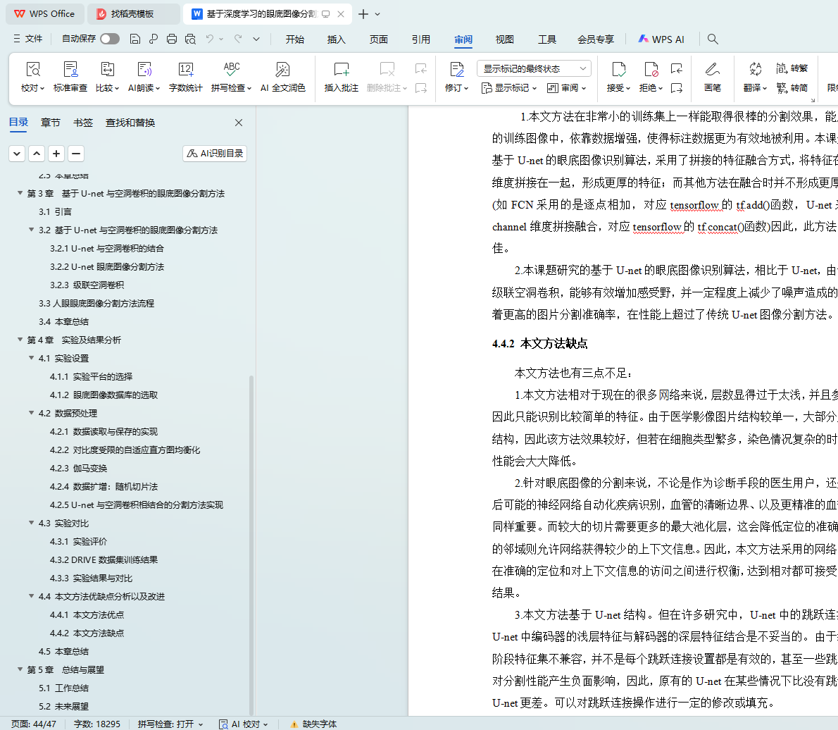 最终,本文使用DRIVE数据集中的数据进行了实验,并将得到的结果与已有的研究结果进行了比较。结果表明,本方法即使在非常小的训练集上也能取得较好的分割效果。本方法相比于传统的U-net方法,增加了感受野,降低了计算量,减少了噪声造成的影响,有着较好的图片分割准确率,在性能上具有一定优势。