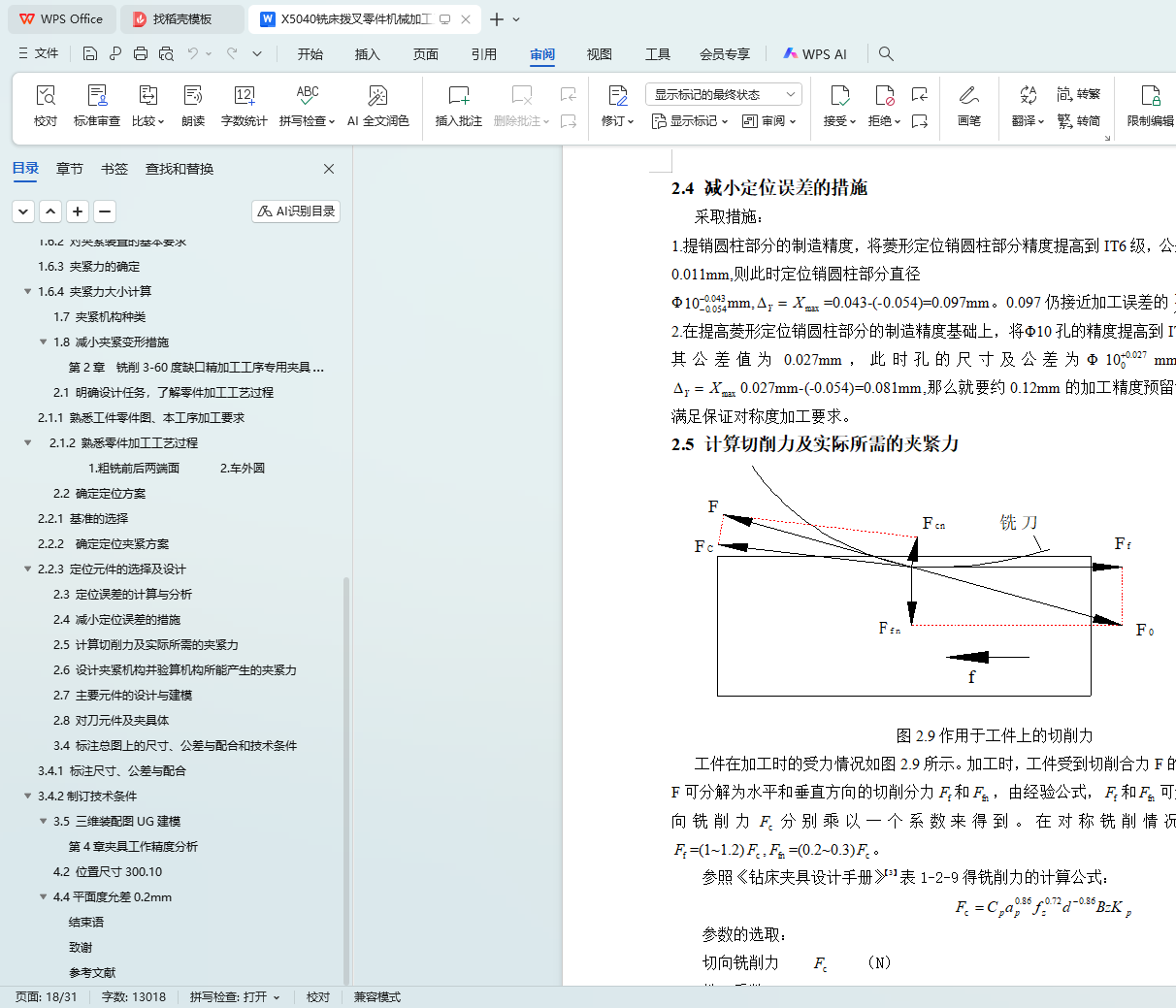2.5 计算切削力及实际所需的夹紧力