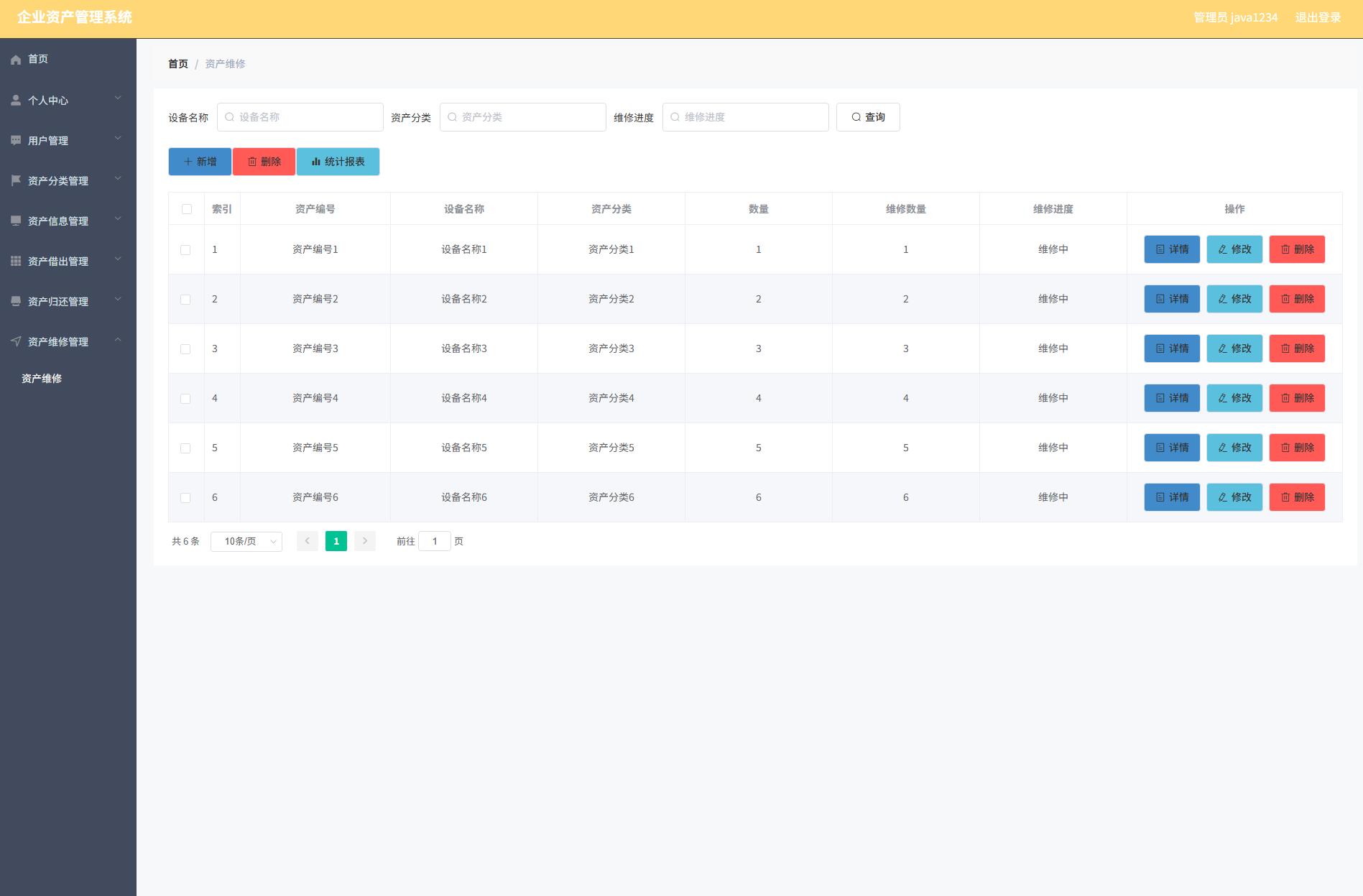 Keywords:Java; Asset Management System; Front-end and Back-end Separation; Spring Boot; Vue; Full Life Cycle Management