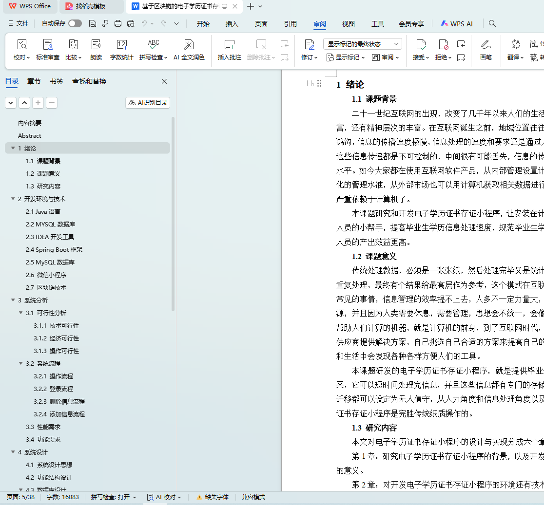 关键词:电子学历证书;Java语言;Spring Boot框架;MySQL数据库;微信小程序;区块链技术;瀑布模型;前后端分离