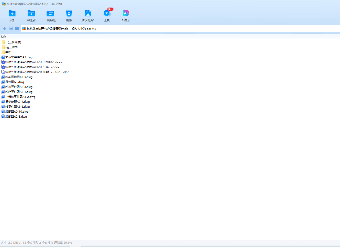 为了解决核桃加工过程中的这些难题,本研究致力于设计一种核桃外皮清理与分级装置。该装置的设计旨在提高核桃外皮清理的效率和分级精度,以满足日益增长的市场需求与品质要求。通过深入研究与实践,我们期望为核桃外皮清理与分级技术的创新与优化贡献力量。