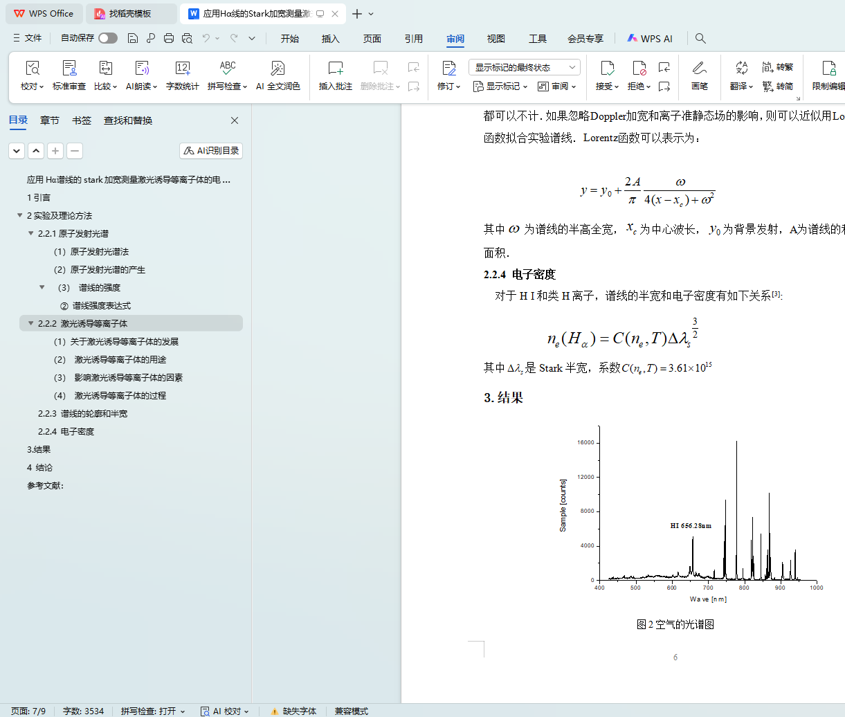 关键词:电子密度;Stark 加宽;Hα线;等离子体