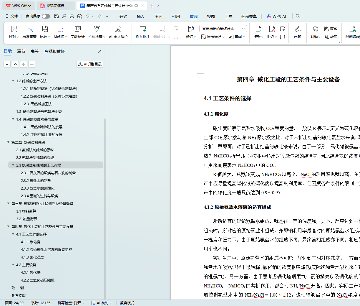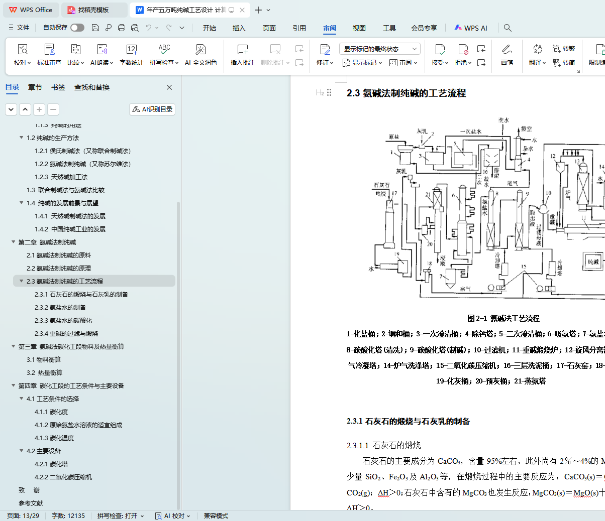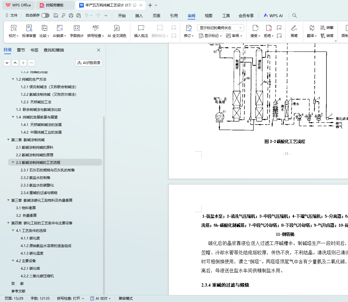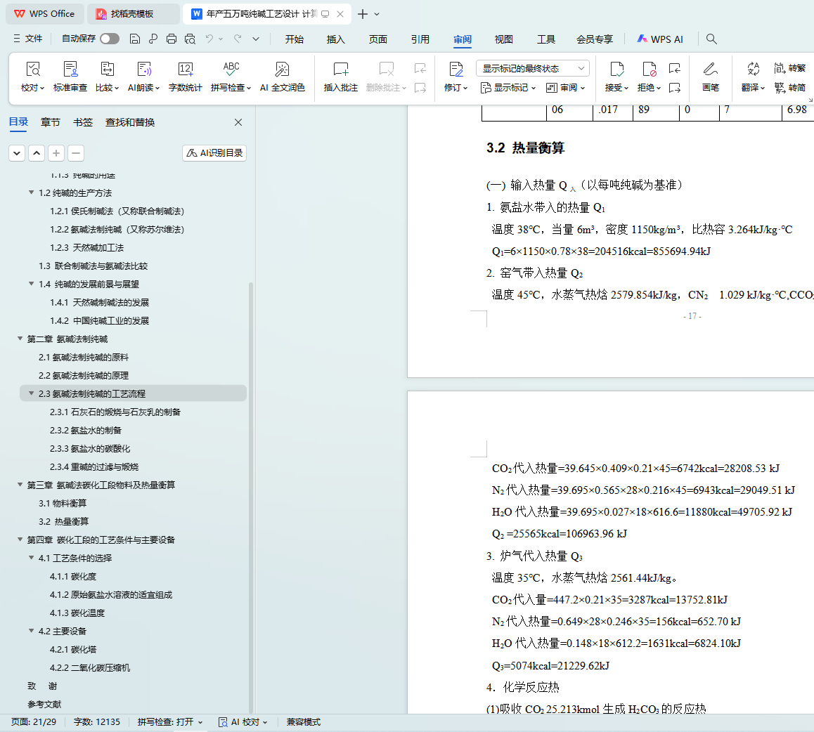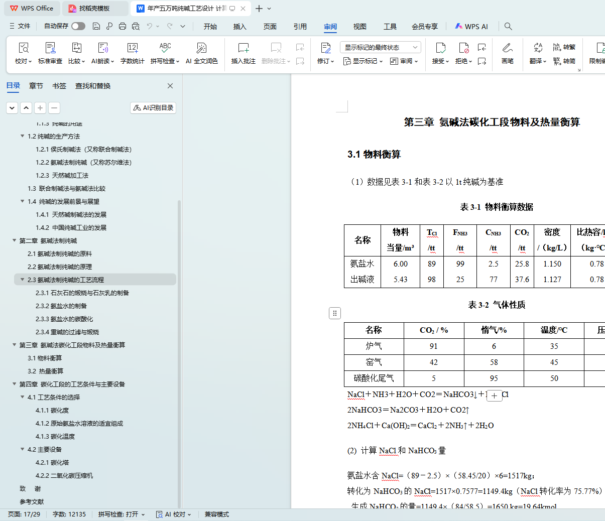 氨碱法制纯碱的一个重要工序是氨盐水的碳酸化,它同时具有吸收、结晶和传热等单元过程。这些单元过程相互联系相互制约。碳酸化的目的在于获得产率高,标志着氯化钠和氨的利用率高,从而使产品成本降低。本设计介绍了纯碱的性质、用途、生产方法和氨碱法制纯碱的工艺流程。重点介绍了碳化工段的工艺流程和物料及热量的衡算。