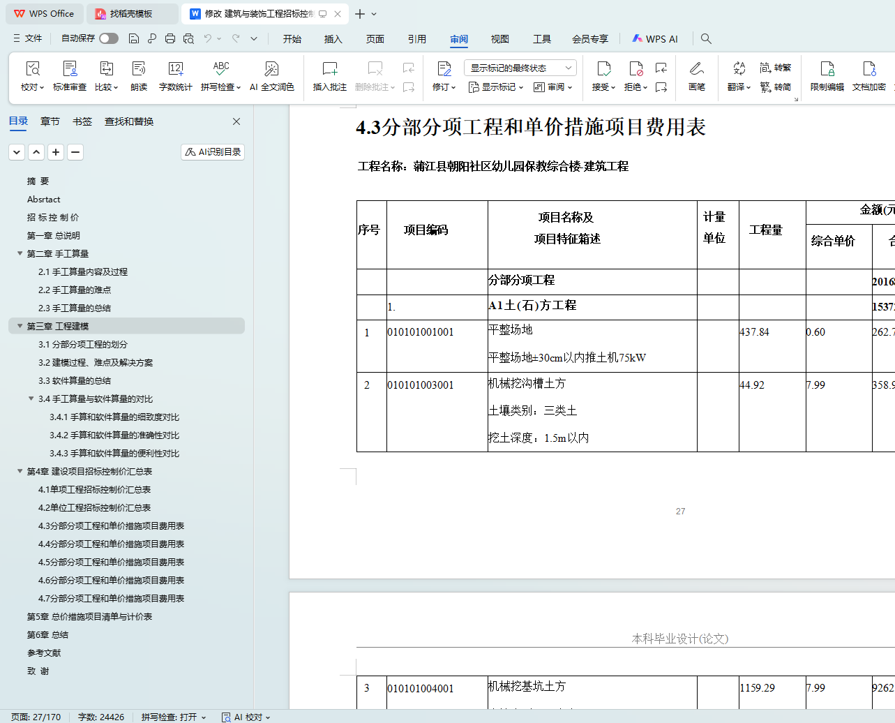4.3分部分项工程和单价措施项目费用表