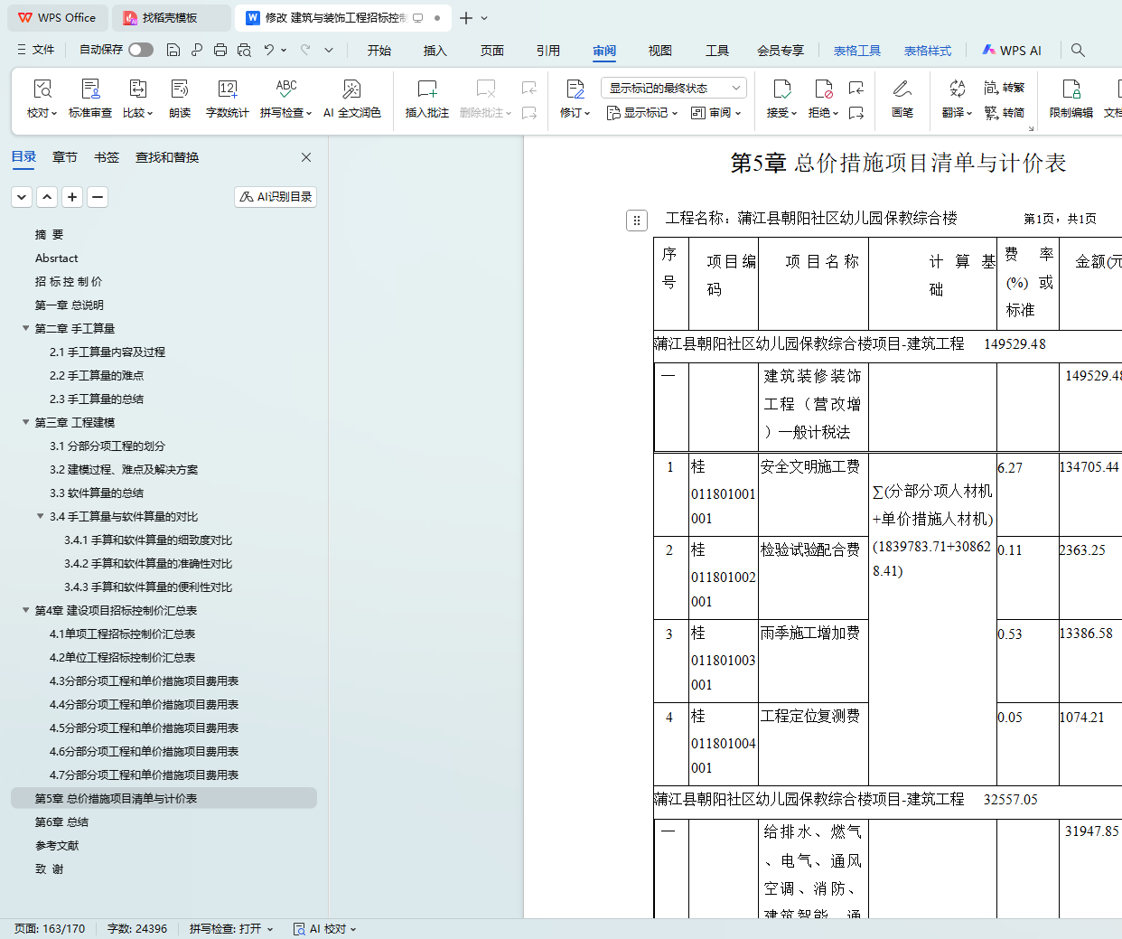 第5章 总价措施项目清单与计价表