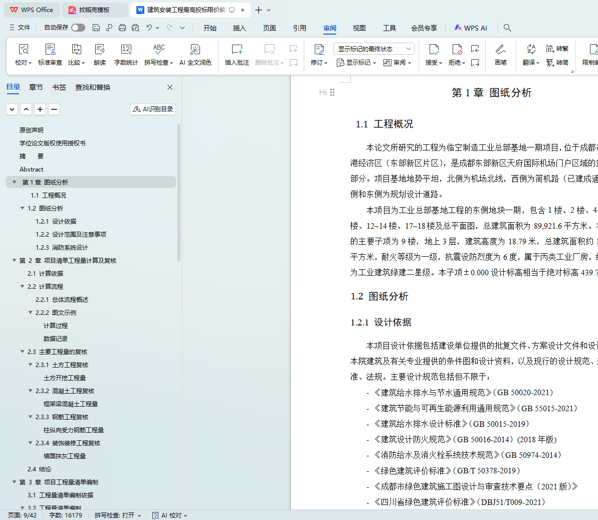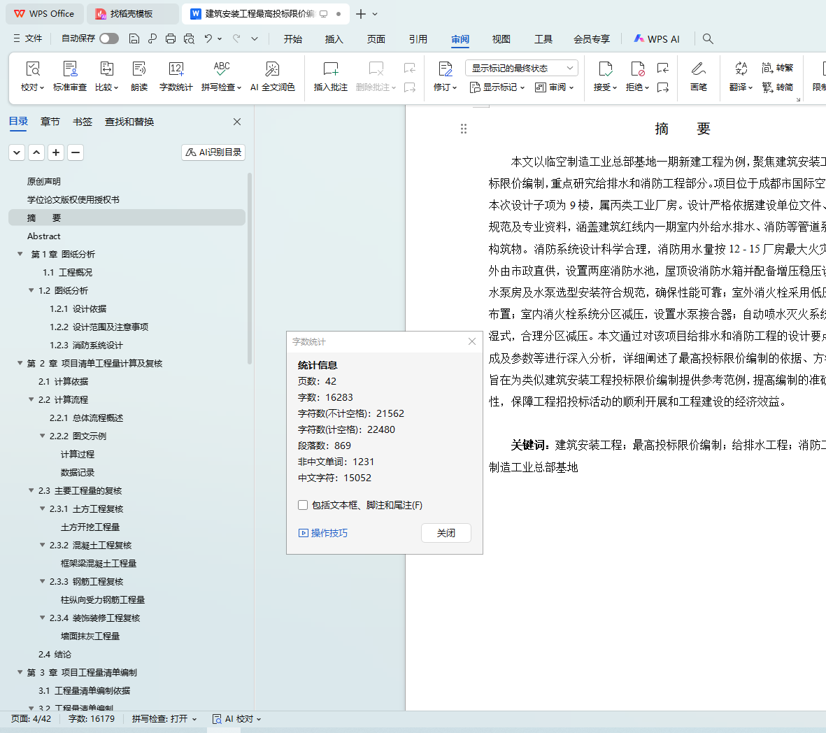 关键词:建筑安装工程;最高投标限价编制;给排水工程;消防工程;临空制造工业总部基地