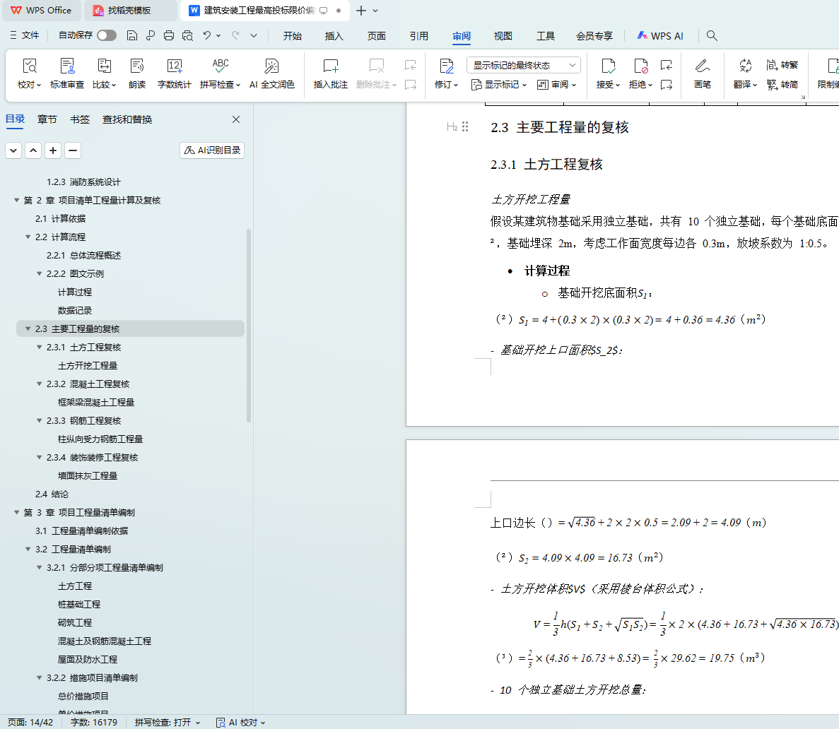 2.3 主要工程量的复核