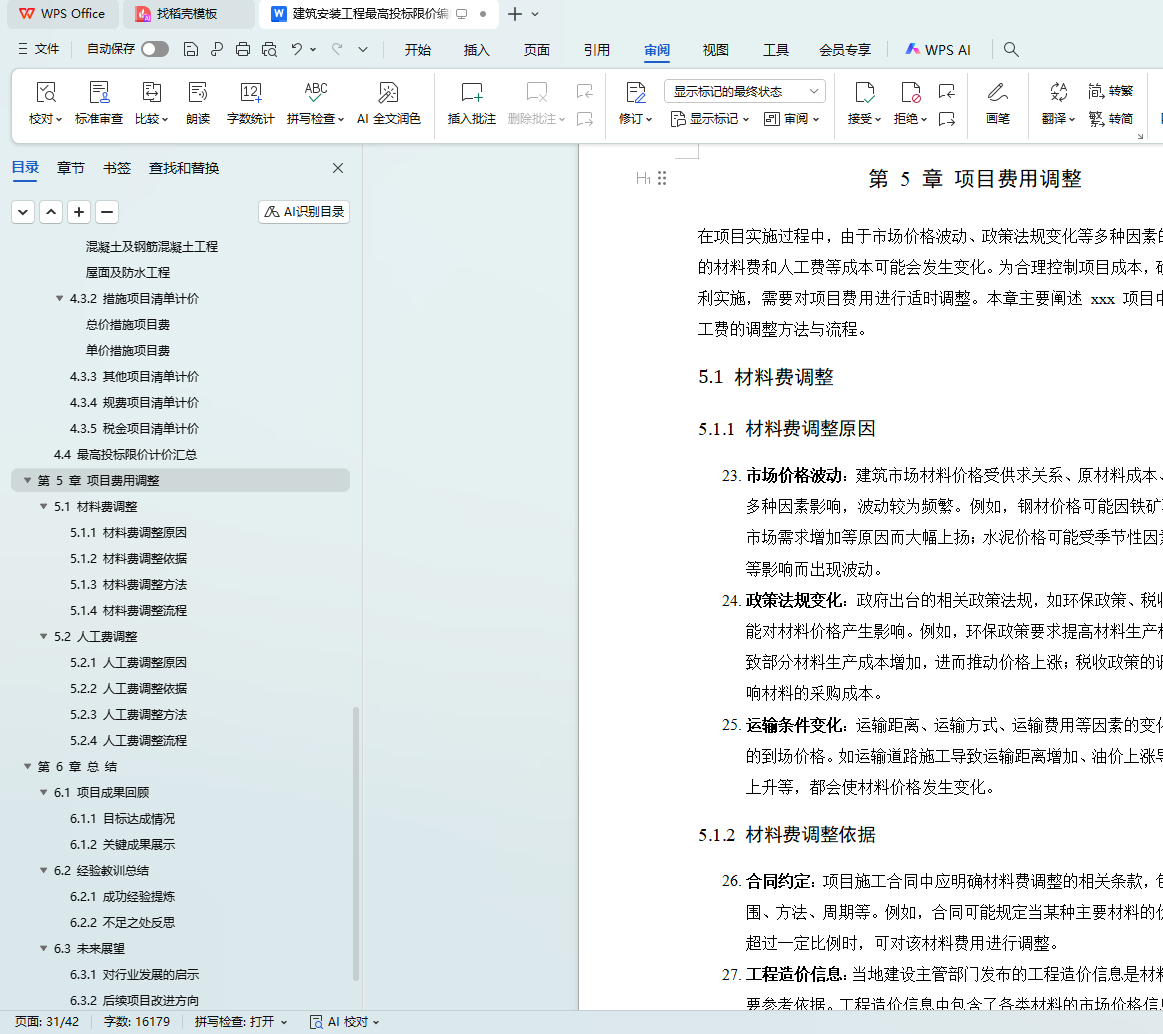 5.1 材料费调整