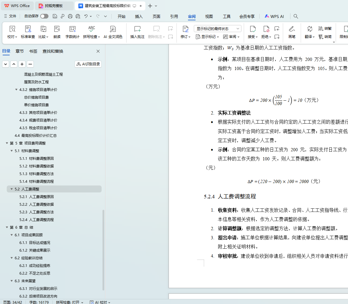 5.2.3 人工费调整方法