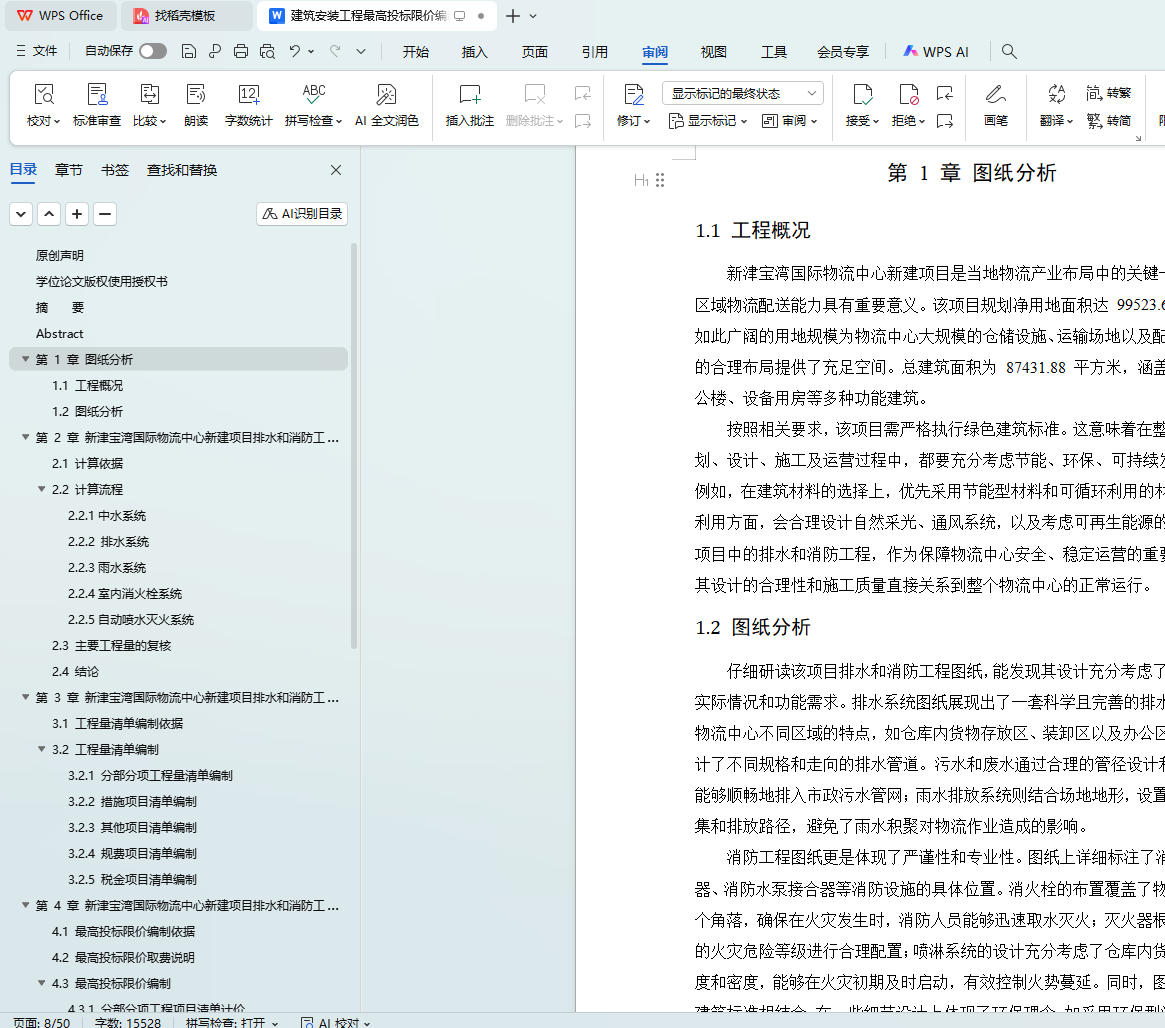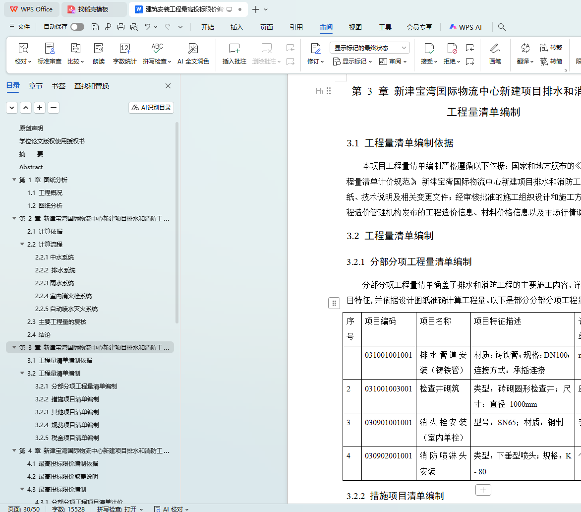最高投标限价编制是工程招投标的关键环节,关乎工程投资的合理控制与市场秩序的稳定。本文详细分析该项目排水和消防工程的特点与需求,综合考虑材料价格、施工工艺、市场行情等因素,依据相关标准和技术要点,阐述科学合理的编制方法与流程。通过本研究,旨在为同类建筑安装工程最高投标限价的编制提供可借鉴的实践经验和理论依据,助力提高工程造价管理的精准度和效率,促进建筑市场的健康发展。