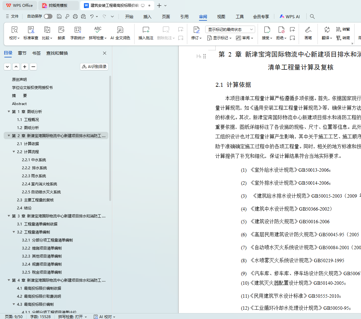 本文聚焦建筑安装工程最高投标限价编制,以某物流中心新建项目排水和消防工程为具体案例展开研究。在编制过程中,严格遵循《绿色工业建筑评价标准》《建筑节能与可再生能源利用通用规范》等多项国家和地方标准规范,同时结合新津宝湾国际物流中心新建项目的实际情况,该项目规划净用地面积99523.66万平方米,总建筑面积87431.88平方米等,且按照要求需执行绿色建筑标准。