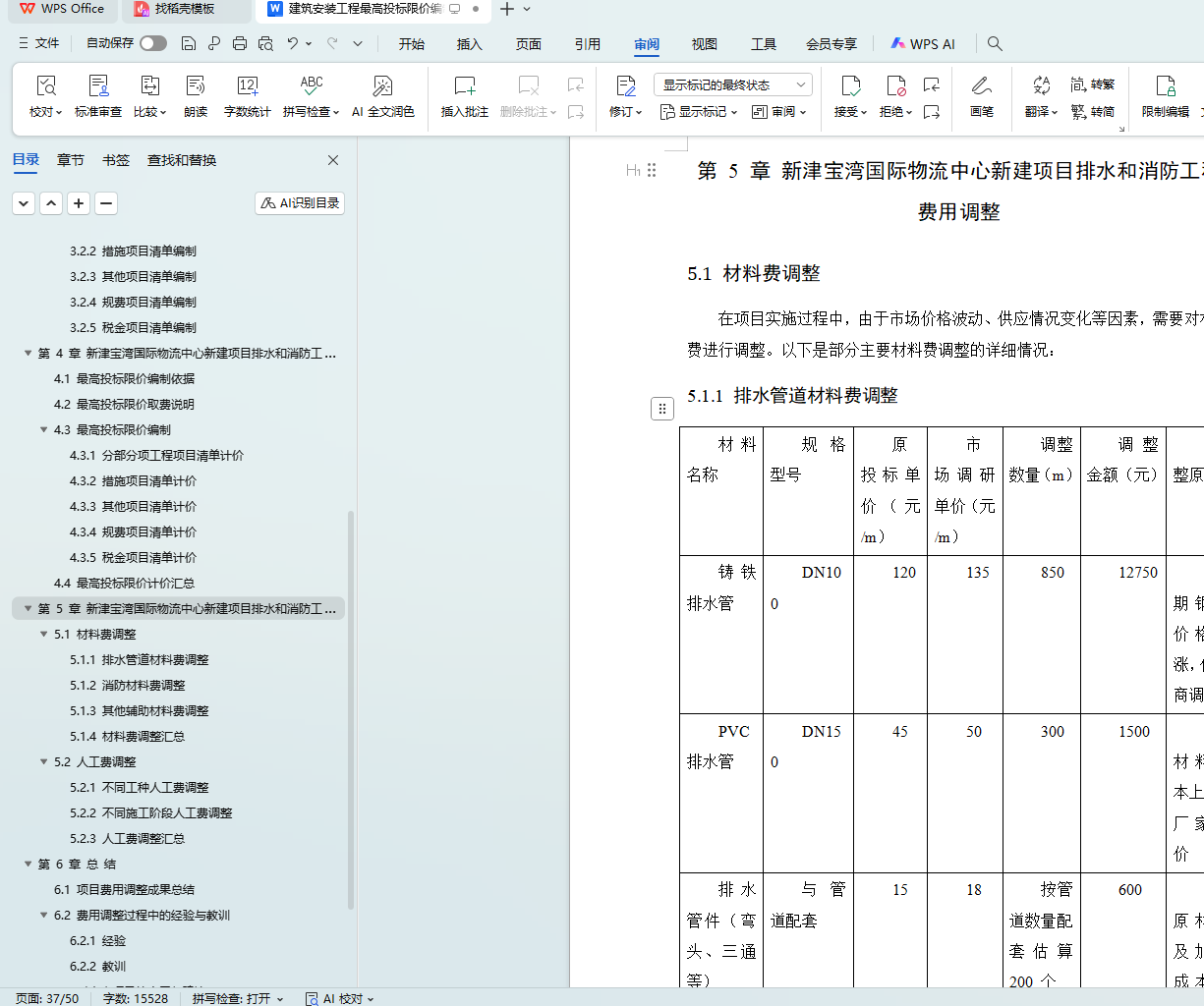 5.1 材料费调整