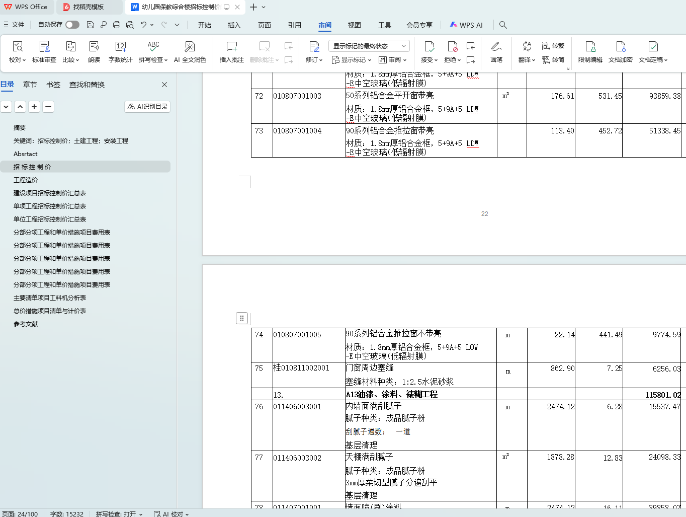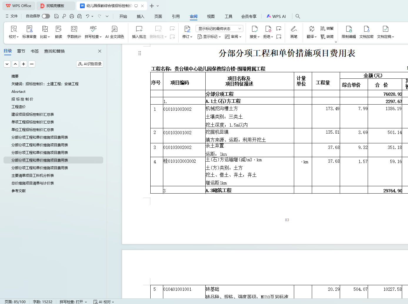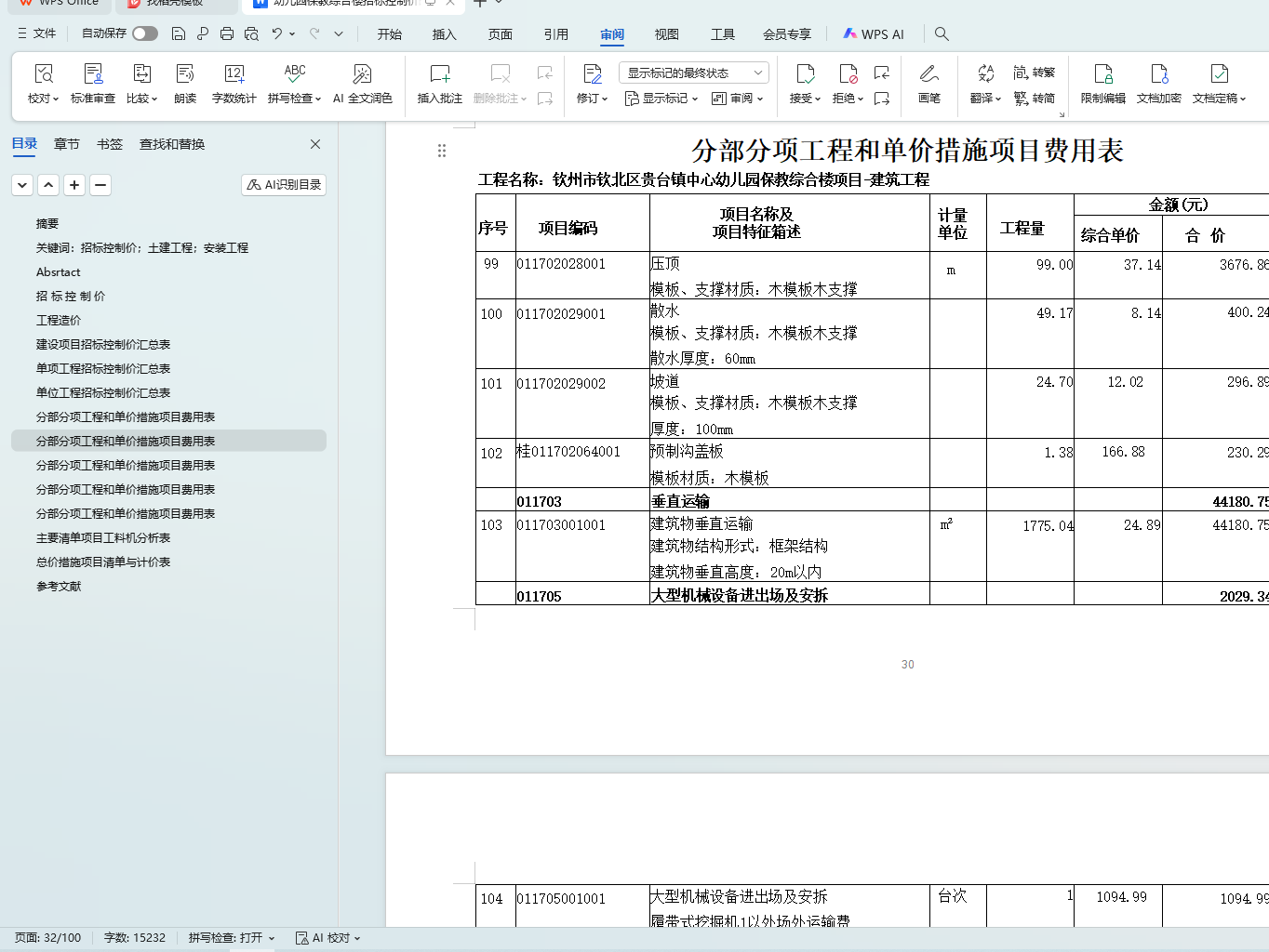 本设计为贵台镇中心幼儿园保教综合楼招标控制价的编制,本工程一共4层,建筑高度15.45m,总建筑面积:1775.04平方米,占地面积:439.19平方米,建筑结构形式为框架结构,建筑工程等级为三级。本工程总造价:3963673.35元,其中建筑工程:3049581.40元;其中安装工程:766118.10元,围墙附属工程:113189.31元,总平消防工程:34784.54元。