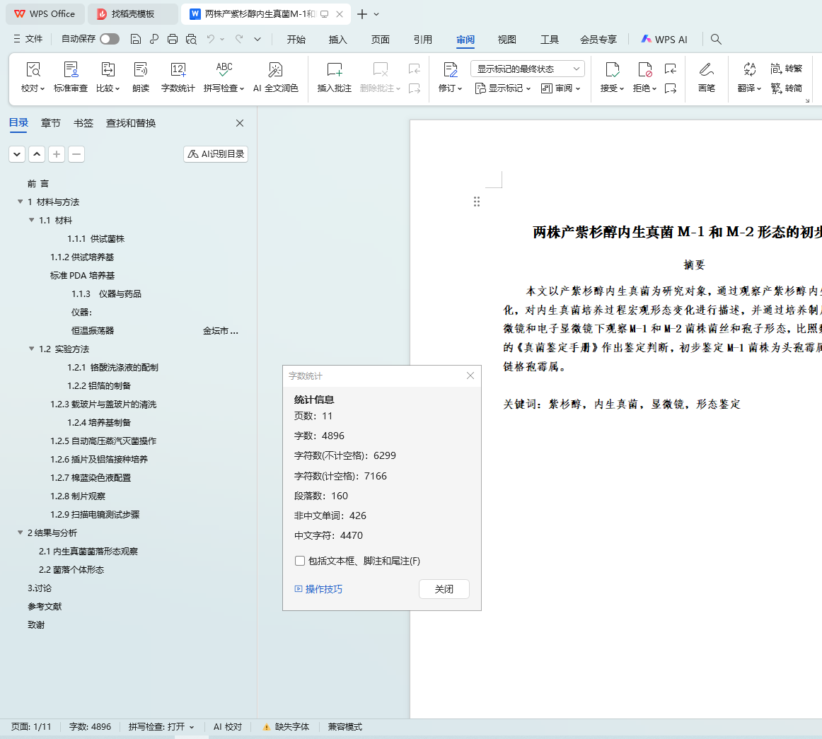 本文以产紫杉醇内生真菌为研究对象,通过观察产紫杉醇内生真菌形态变化,对内生真菌培养过程宏观形态变化进行描述,并通过培养制片,在光学显微镜和电子显微镜下观察M-1和M-2菌株菌丝和孢子形态,比照魏景超所编写的《真菌鉴定手册》作出鉴定判断,初步鉴定M-1菌株为头孢霉属,M-2菌株为链格孢霉属。