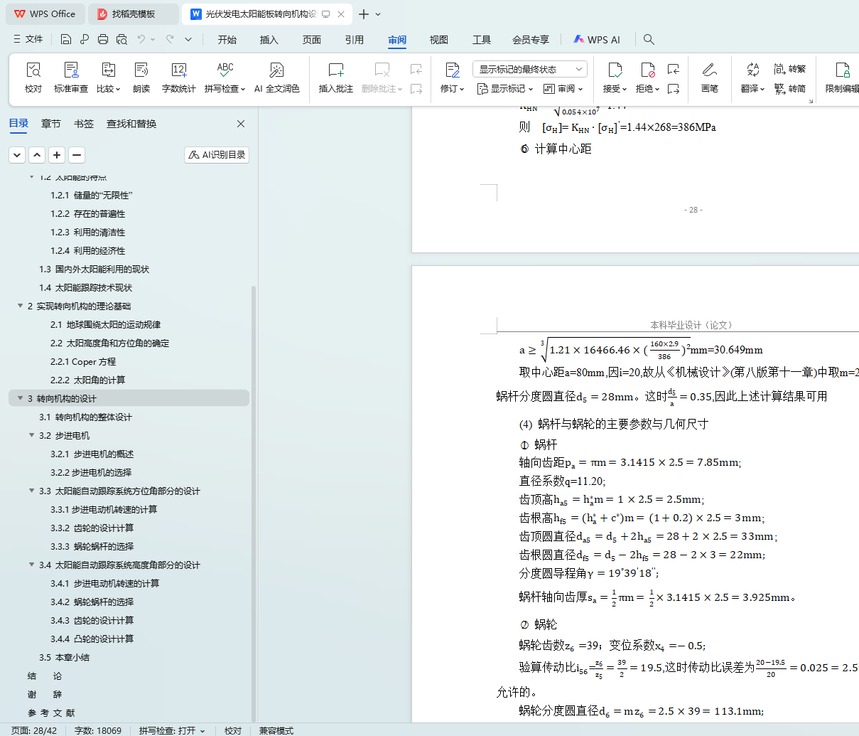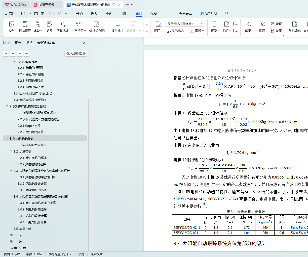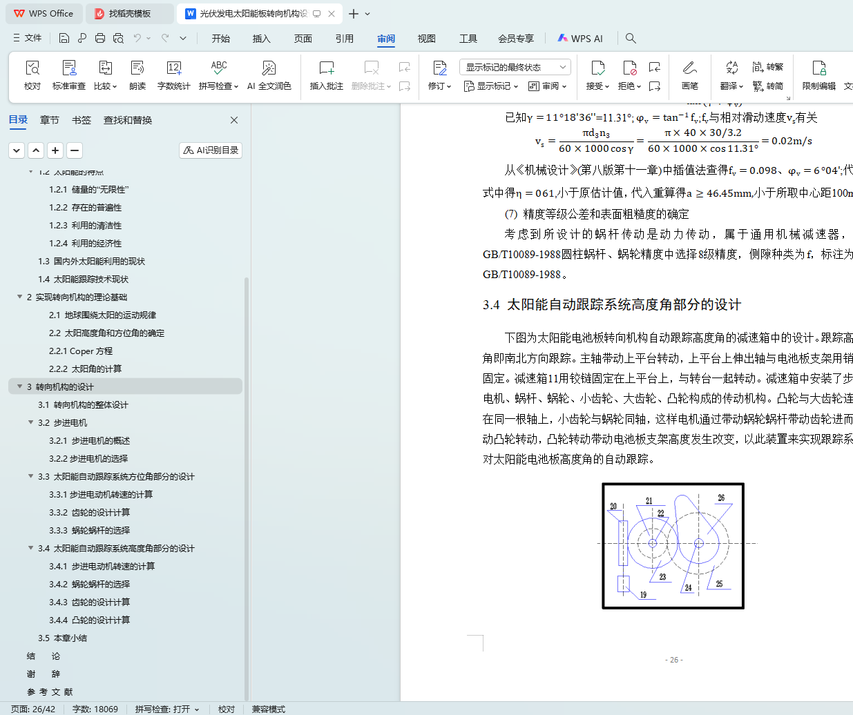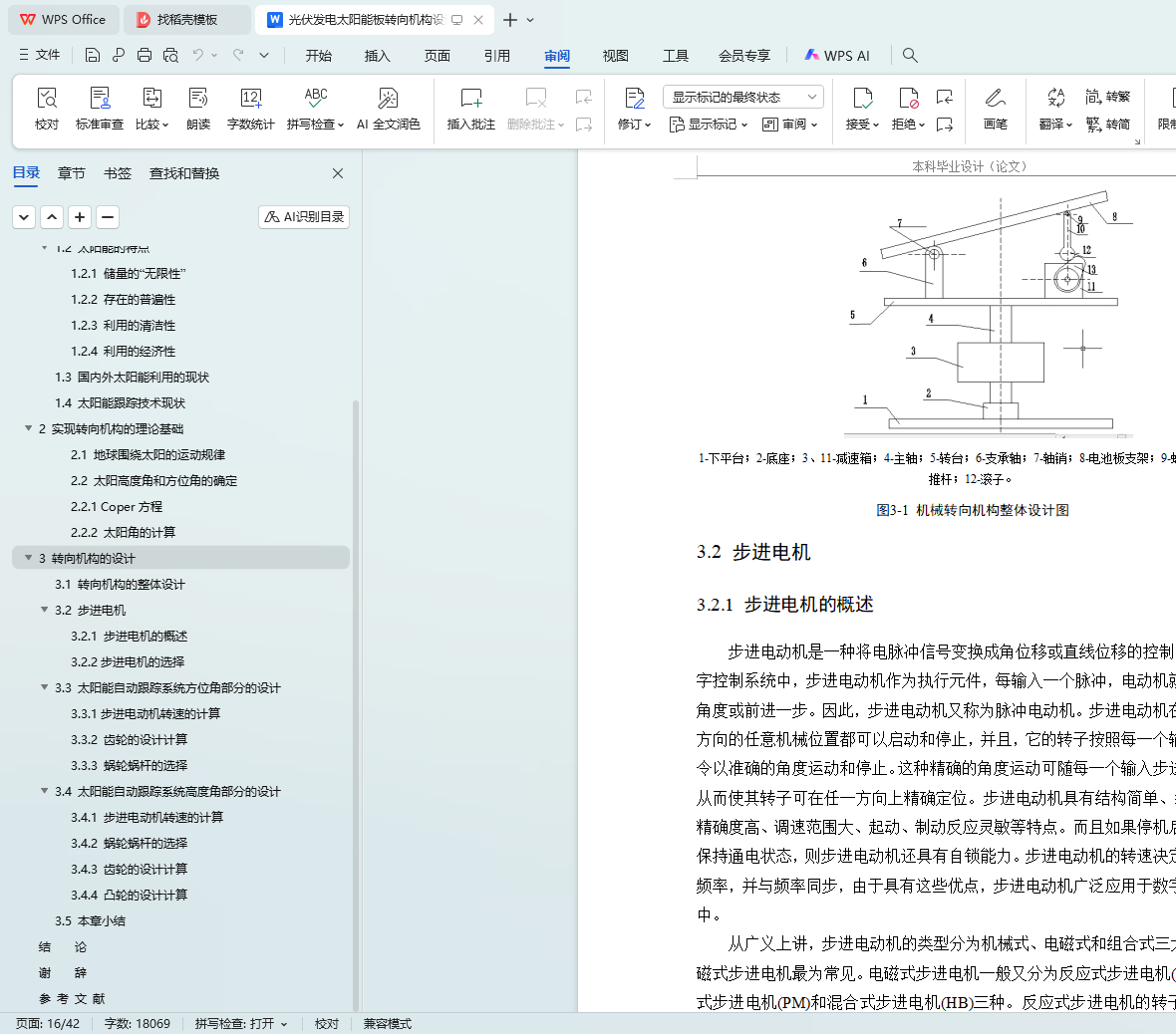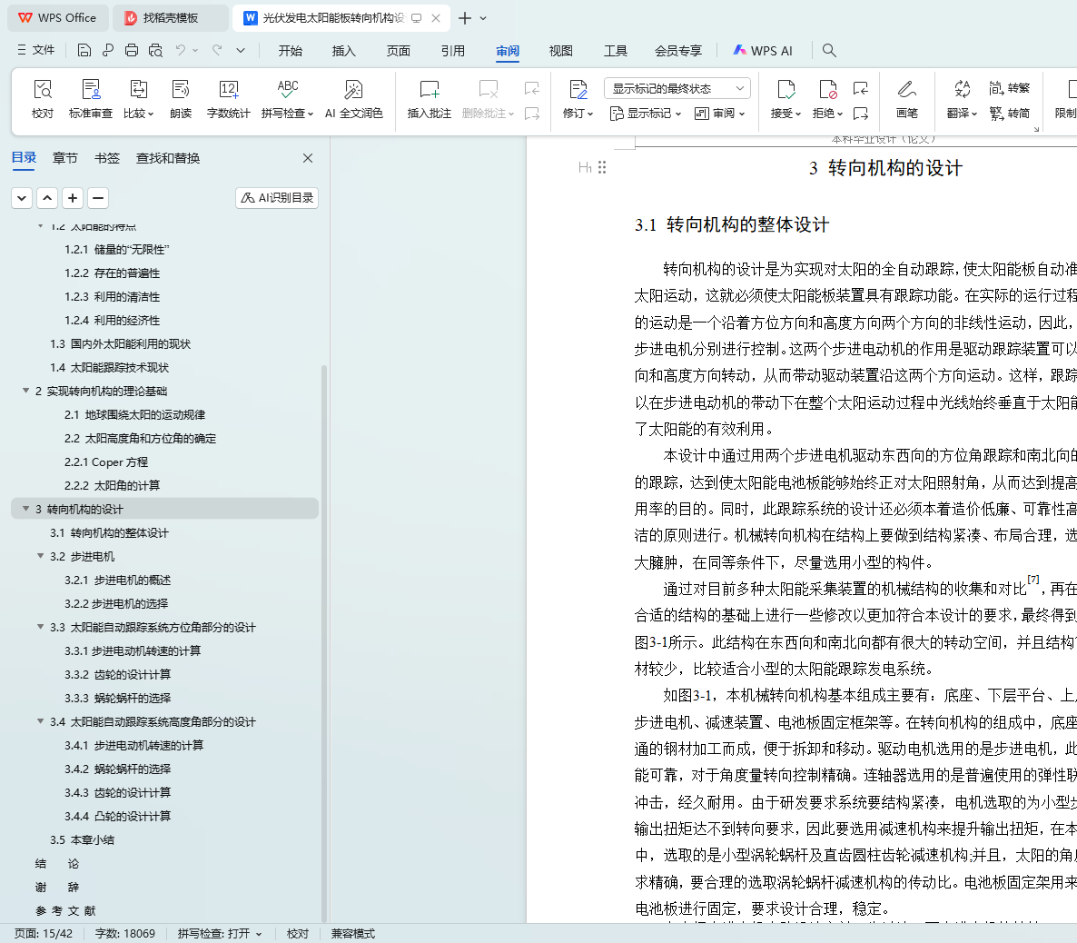 在研究过程中,本论文详细阐述了转向机构的整体设计思路,包括步进电机的选择、齿轮和蜗轮蜗杆的设计计算以及凸轮机构的设计等关键环节。通过理论分析和计算,验证了该系统的可行性和有效性。然而,由于时间及目前知识水平的限制,本研究中的跟踪系统仍存在一定的误差,有待进一步改进和优化。