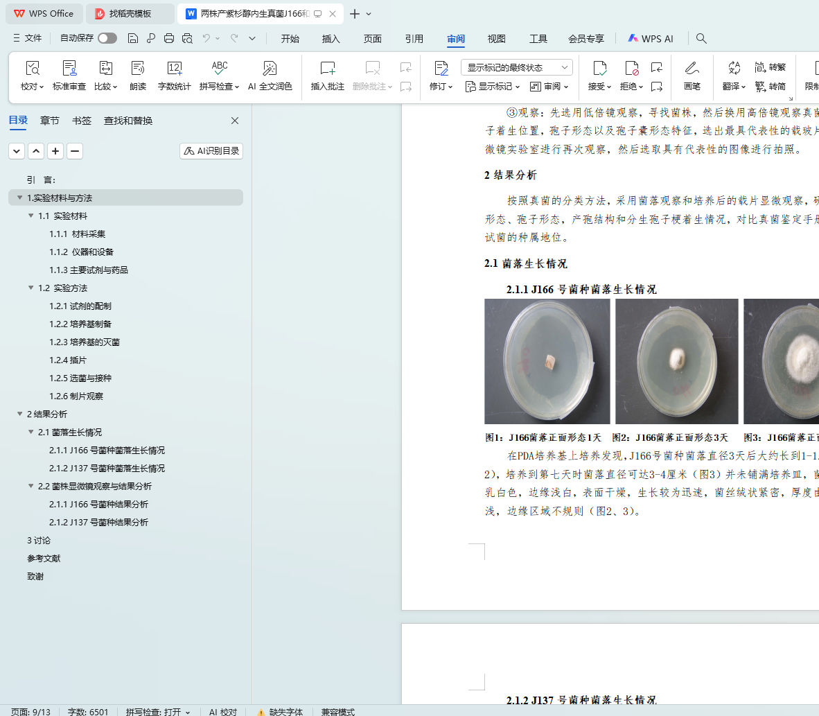 2.1.1 J166号菌种菌落生长情况