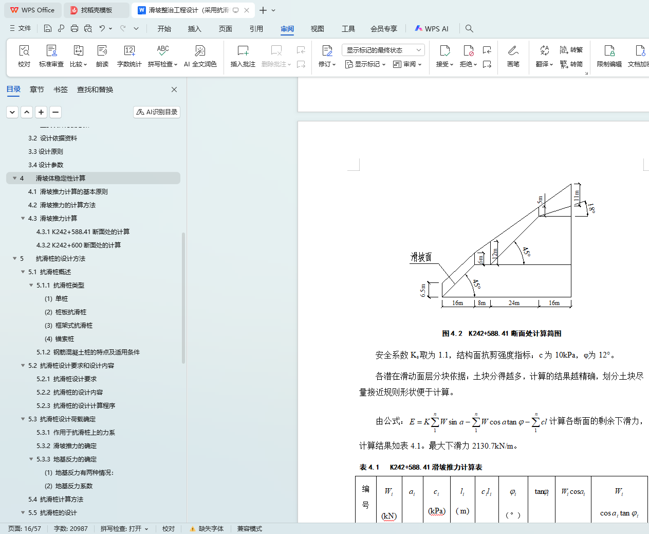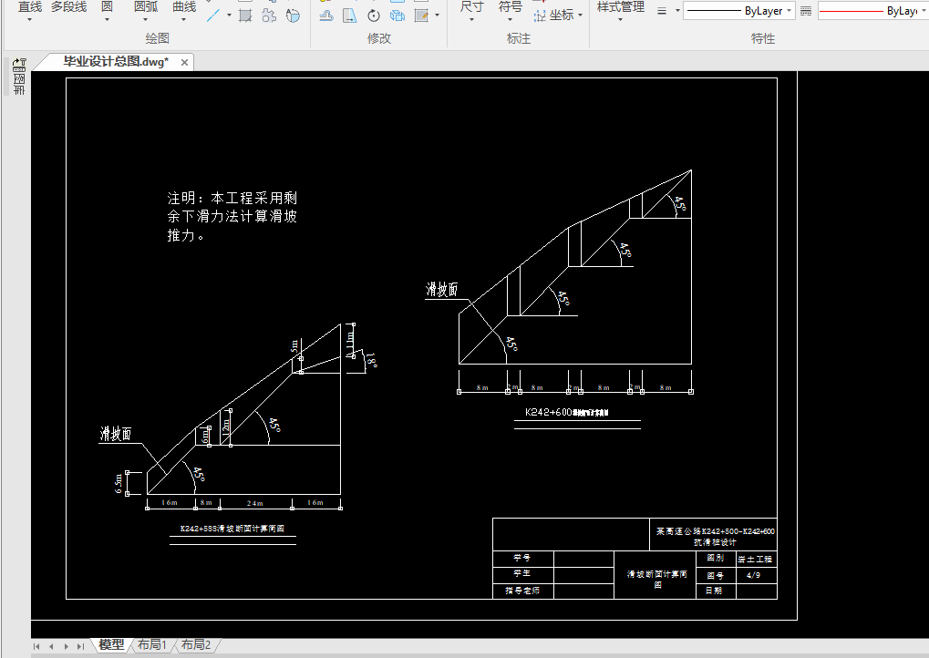 5.6 K242+588.41断面处抗滑桩设计