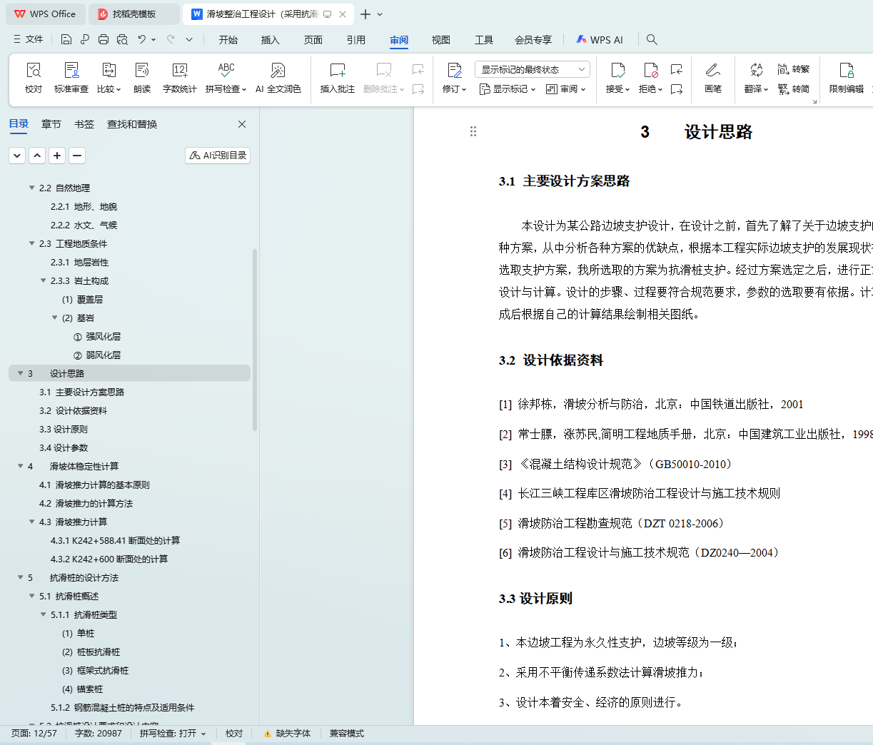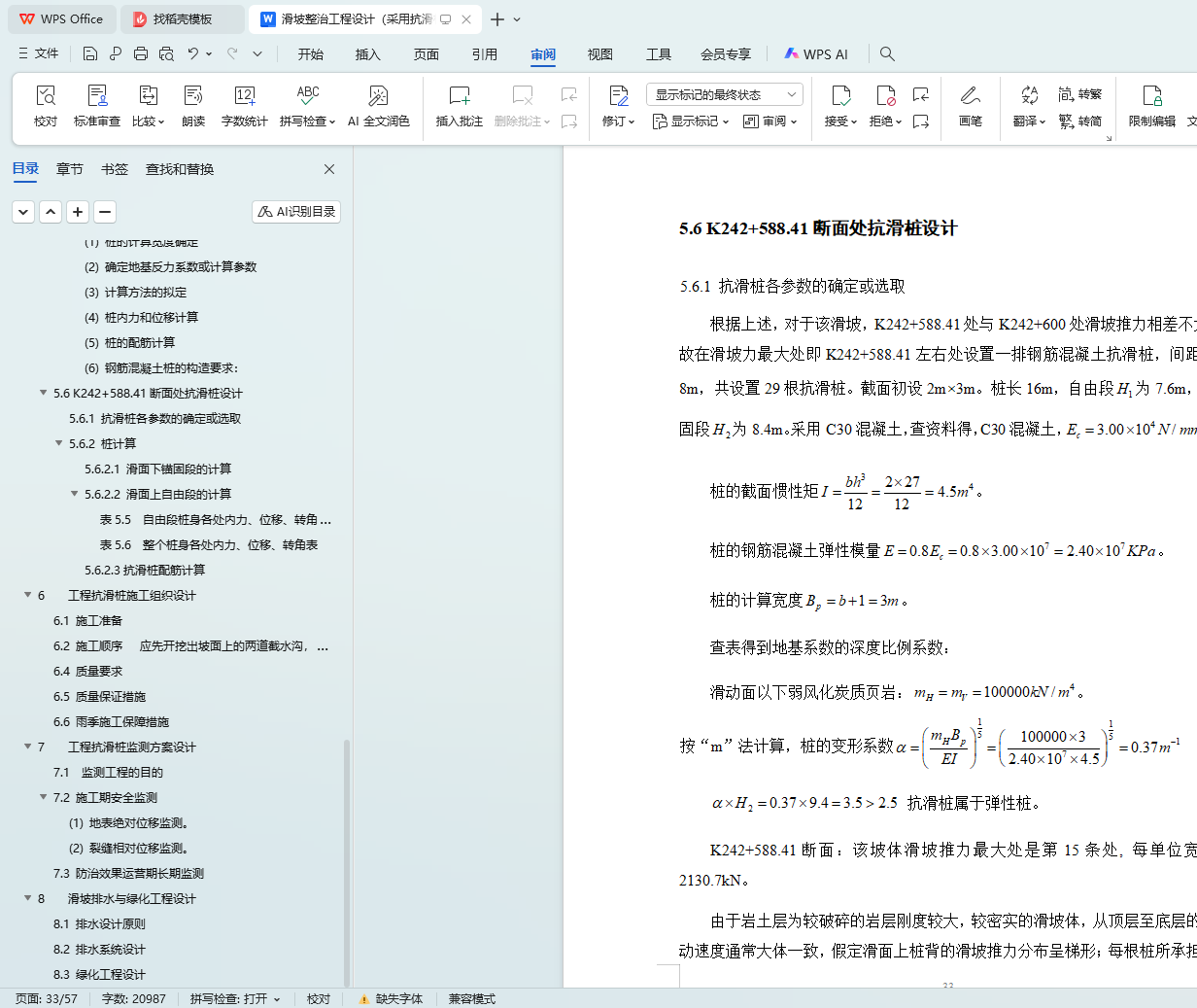 5.2 抗滑桩设计要求和设计内容