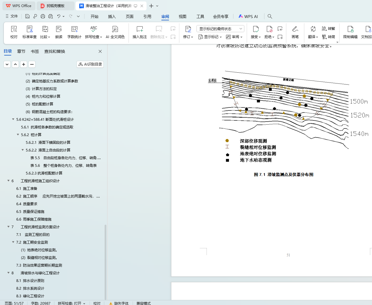 关键词:高速公路;滑坡整治;抗滑桩支护;稳定性计算;施工组织设计;监测方案;排水与绿化工程