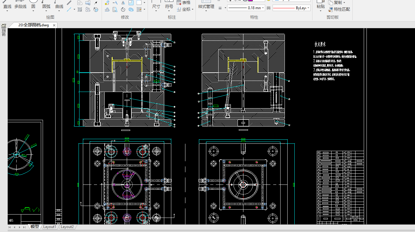 在完成前面的结构设计方案之后,进一步的通过机械设计软件来实现建模,通过采用UG NX软件完成三维模具总装图的建模。采用Auto CAD软件来完成二维总装图的绘制,非标零件工程图绘制。并编制说明书来校核整套模具设计。