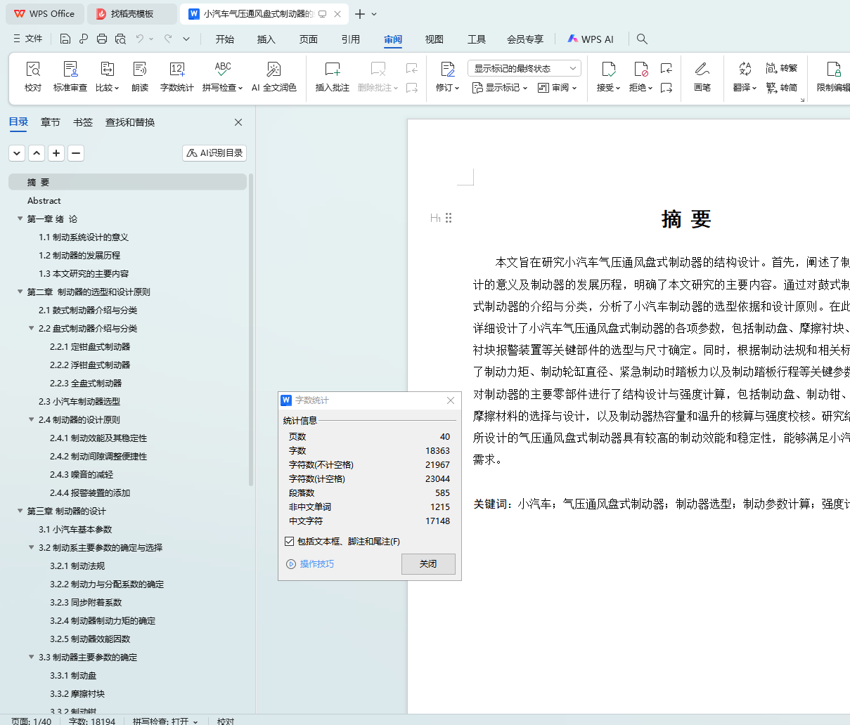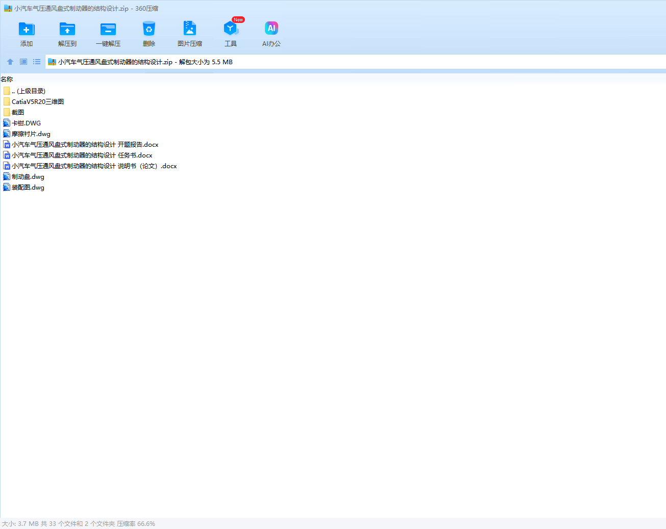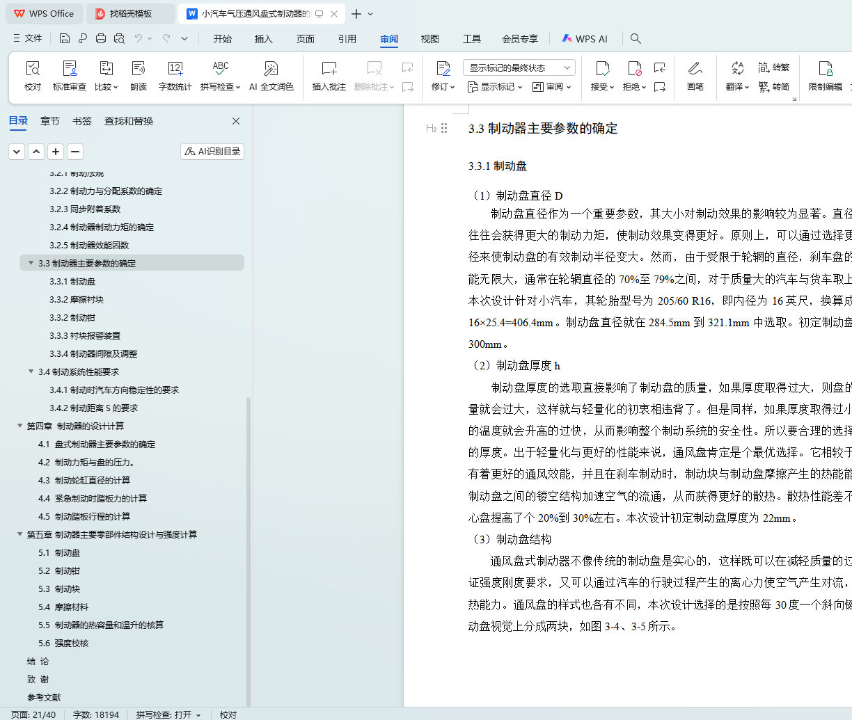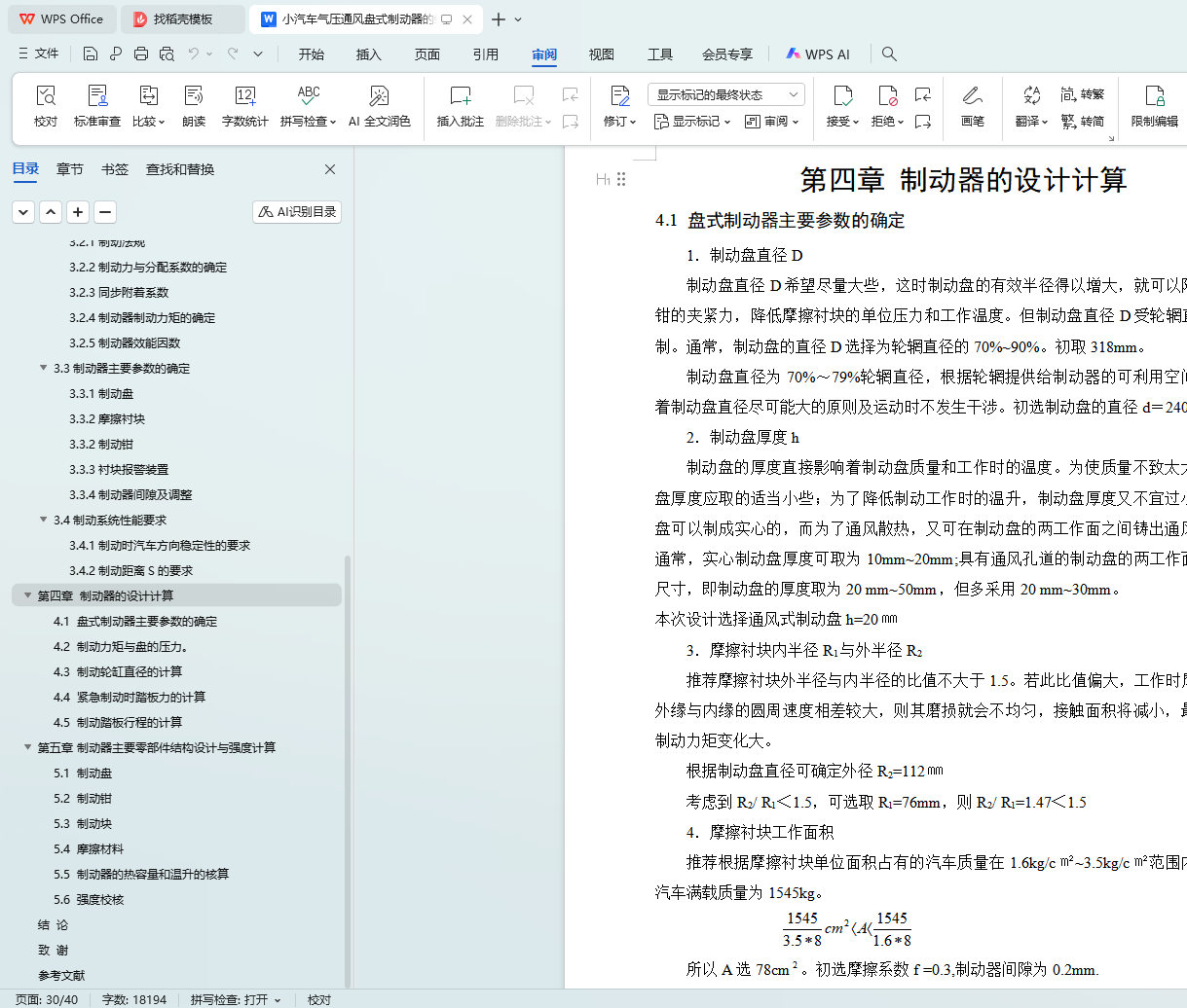 关键词:小汽车;气压通风盘式制动器;制动器选型;制动参数计算;强度计算