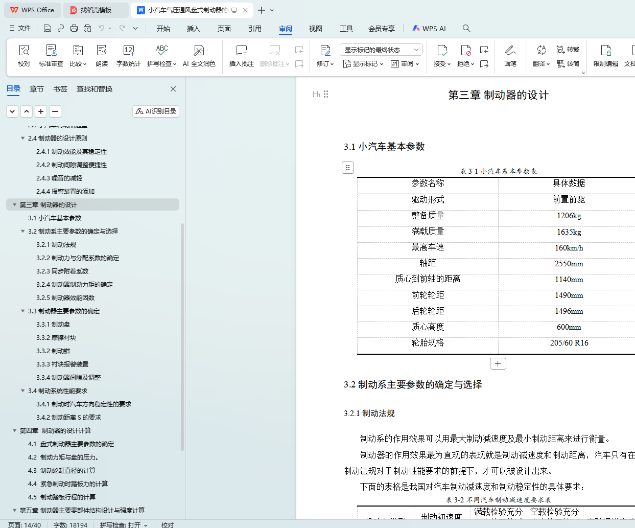 3.2 制动系主要参数的确定与选择