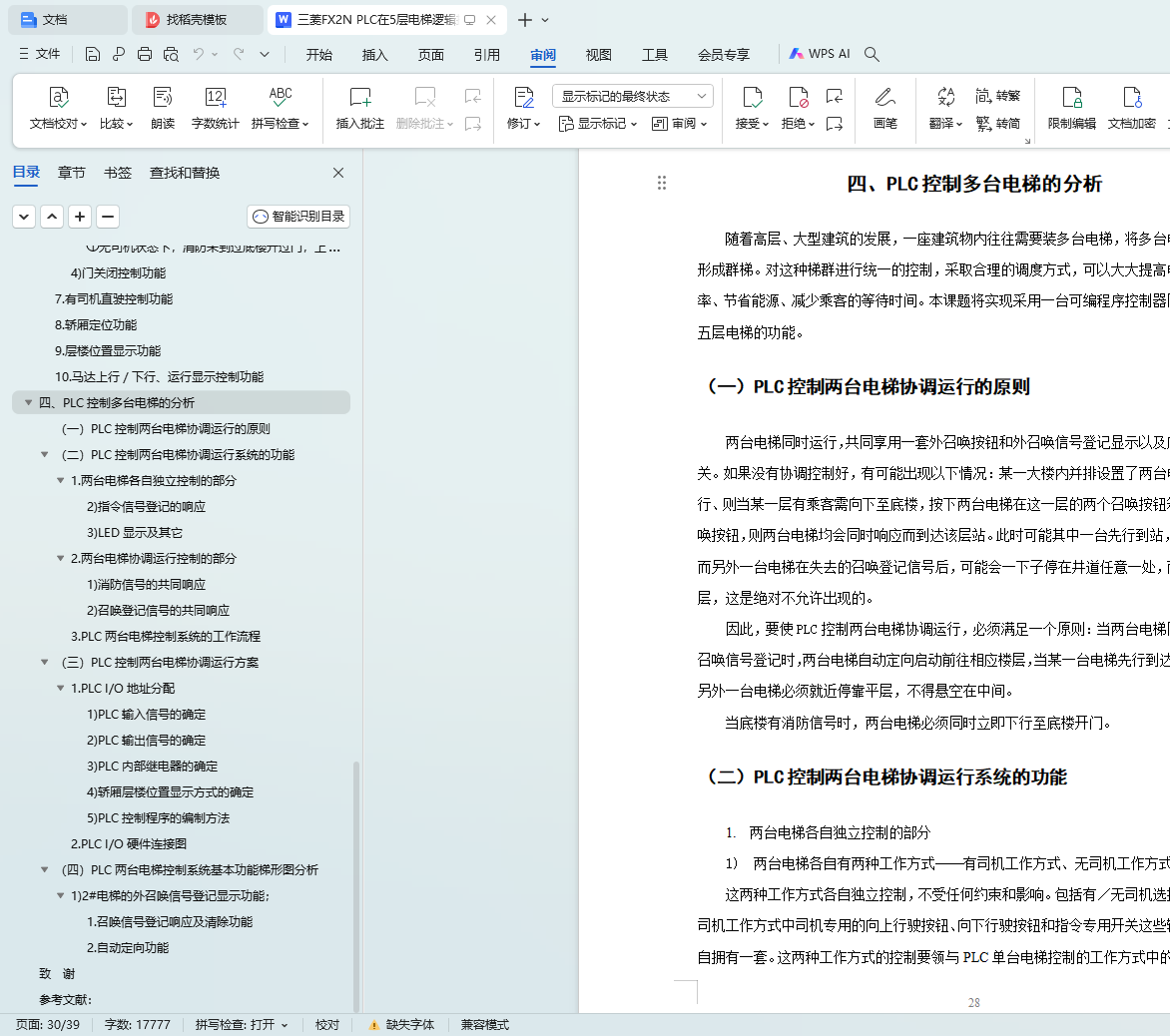 关键词:PLC;电梯;逻辑控制;程序设计