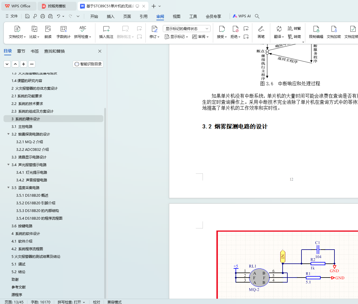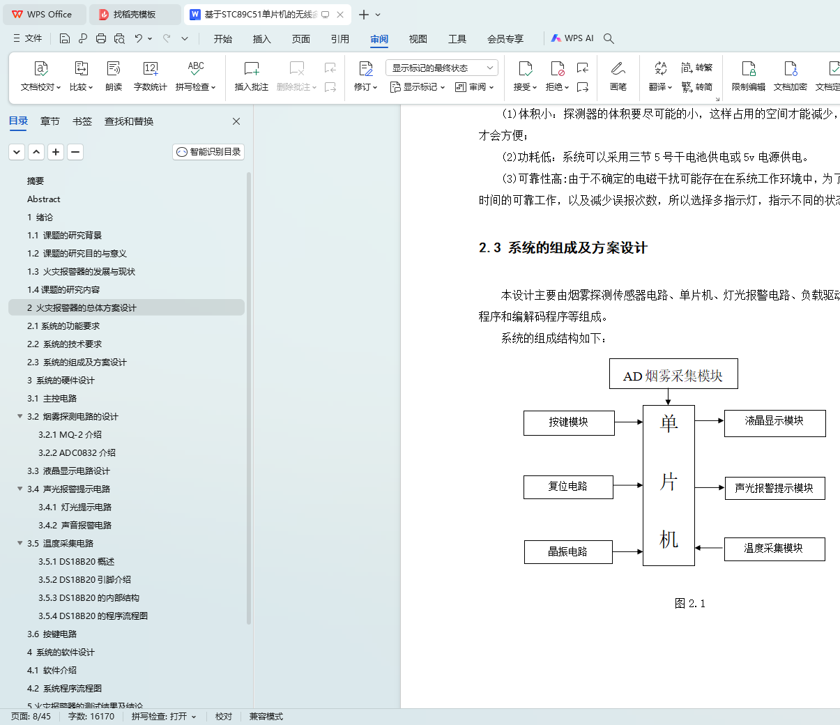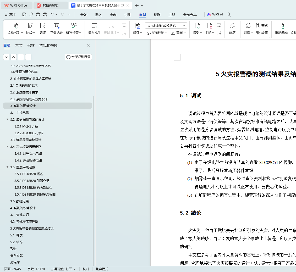 Key words: STC89C51 single-chip microcomputer; wireless transmission; intelligent fire alarm; gas sensor MQ-2; ADC0832 analog-to-digital converter; DS18B20 temperature sensor