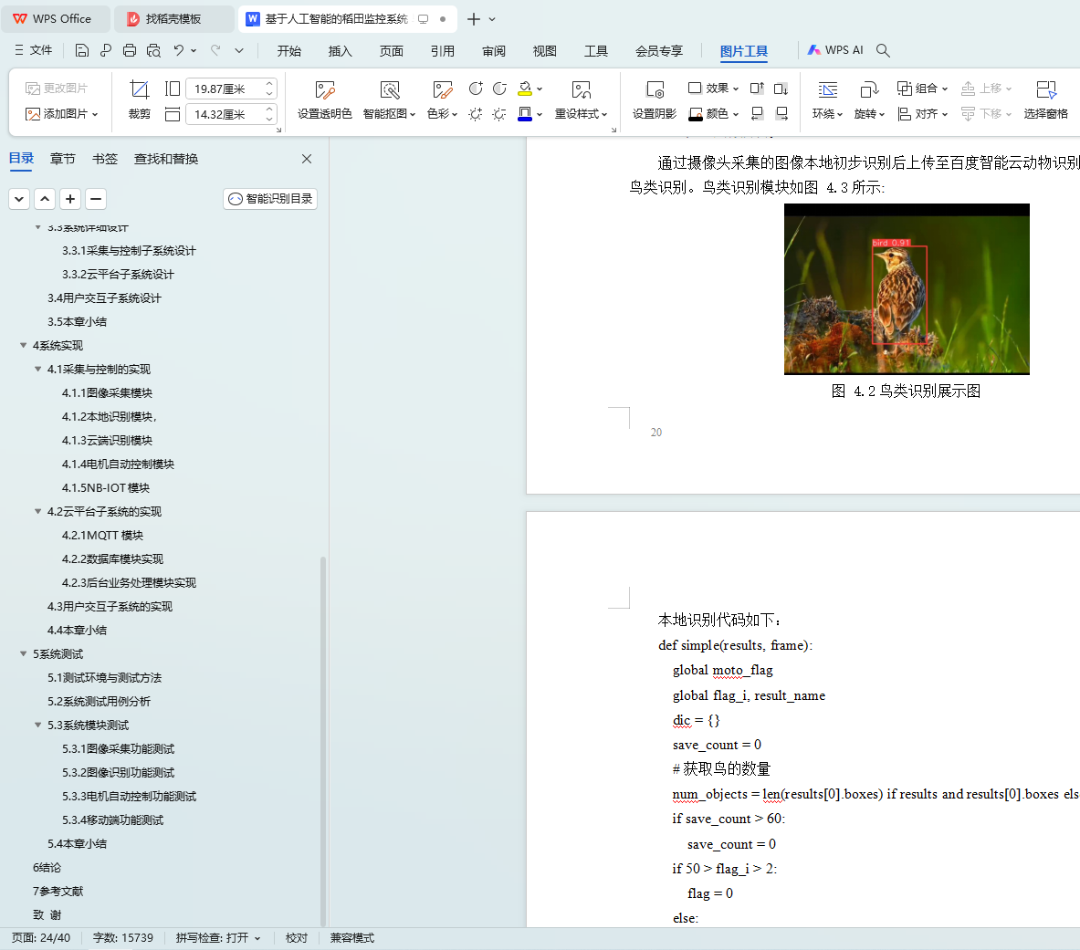 The development of a country is based on agriculture, and the development of agriculture is essential to the overall progress of the country. With the progress of science and technology, agricultural intelligence has become an important direction to promote agricultural modernization, improve agricultural production efficiency and ensure the quality of agricultural products. In particular, bird damage to crops is a widespread problem, which directly affects crop yields and farmers' incomes. Therefore, it is necessary to develop an efficient solution to deal with this problem.
