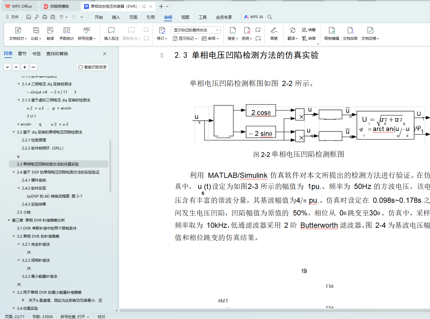 2.3 单相电压凹陷检测方法的仿真实验19