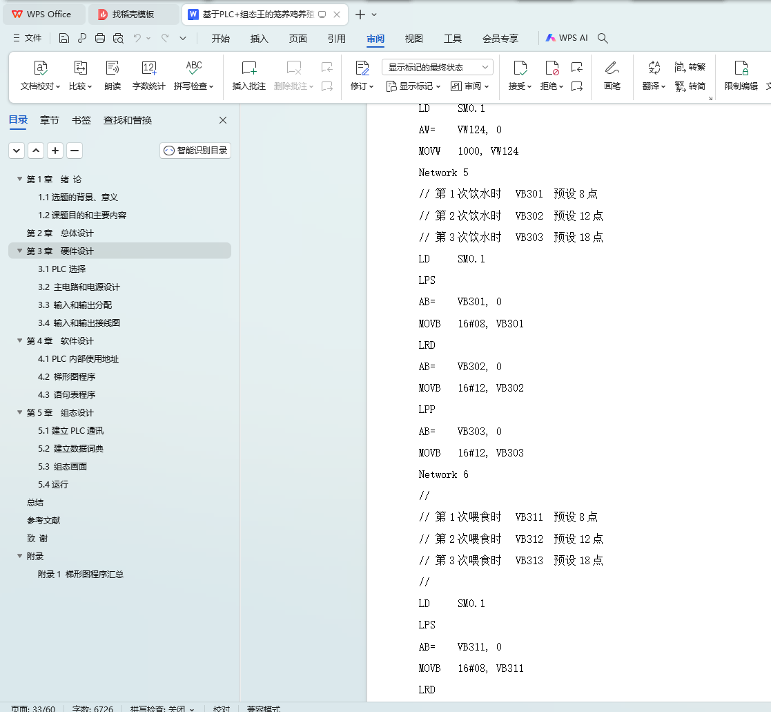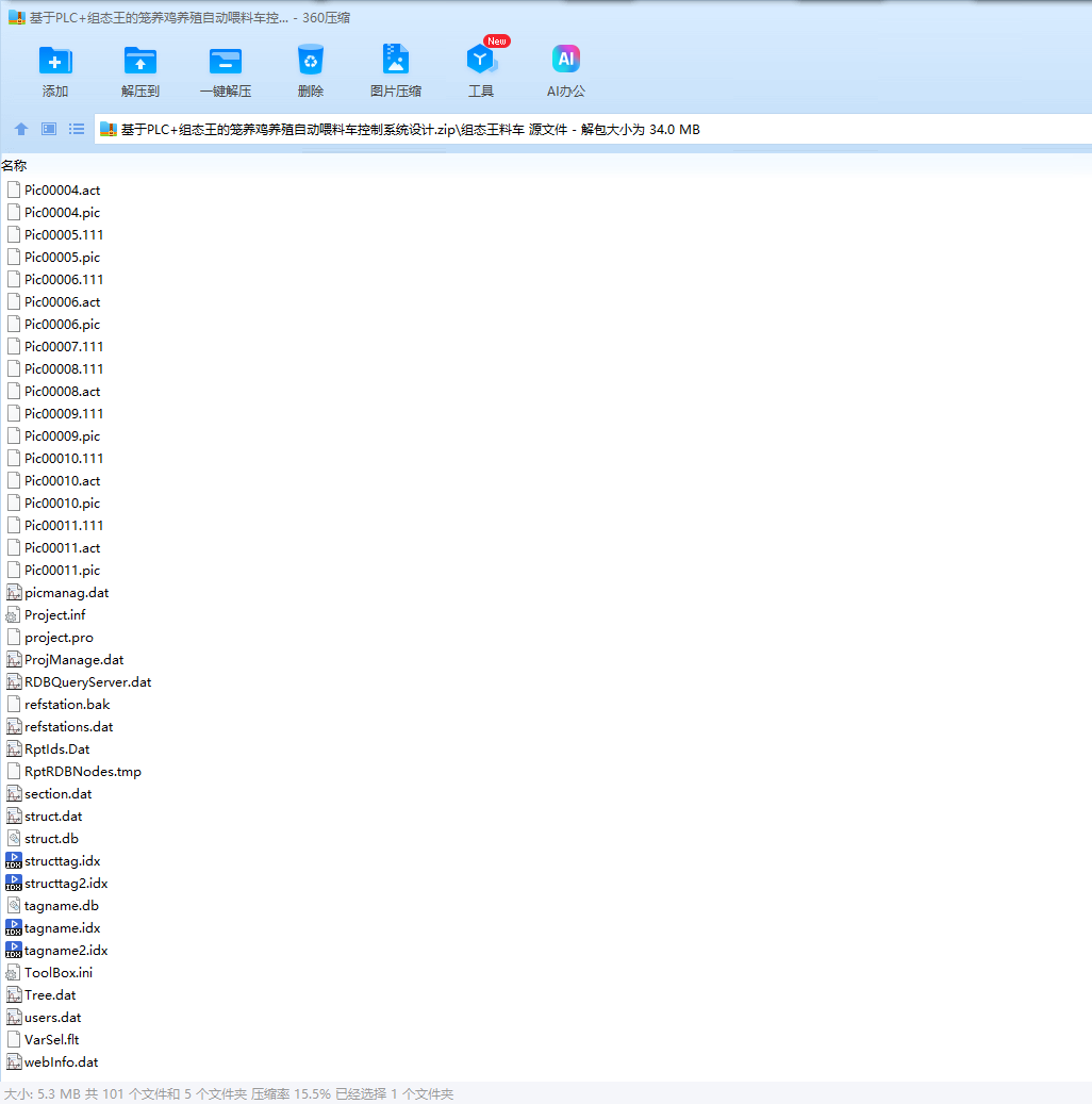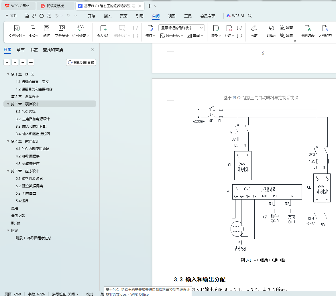 本课题是基于PLC的自动喂料车控制系统的设计,采用西门子的小型可编程控制器S7-200,外加步进驱动器和步进电机,组态王为上位机,设计了一套基于PLC的自动喂料车控制系统。通过设定饮水时间和定时,喂料时间和速度等,通过控制步进驱动运行距离和速度调节喂料多少和次数。通过分析控制要求,进行了总体设计,进行了硬件设计,包括主电路,PLC输入和输出,进行了软件设计包括梯形图和语句表程序,进行了组态设计,设计了监控画面,进行参数设定,实时和历史曲线,实时和历史报警,实时和历史报表等。系统具有自动和手动模式,使用灵活,可以通过组态王进行各种参数设定,有多种保护措施,使用安全。