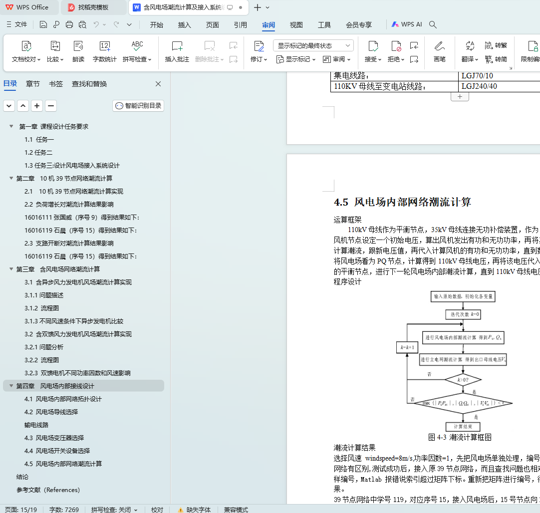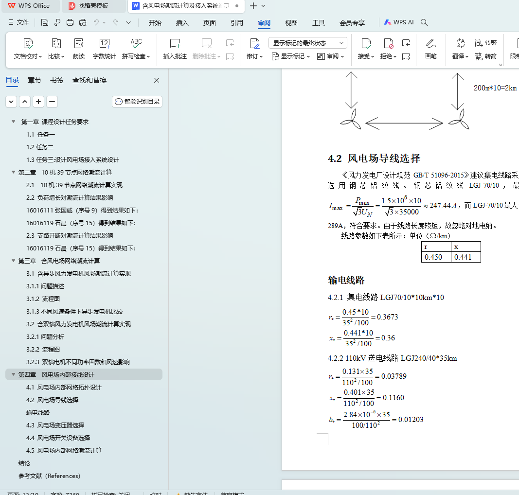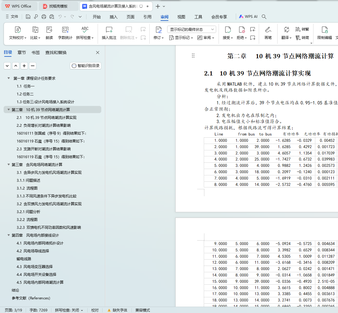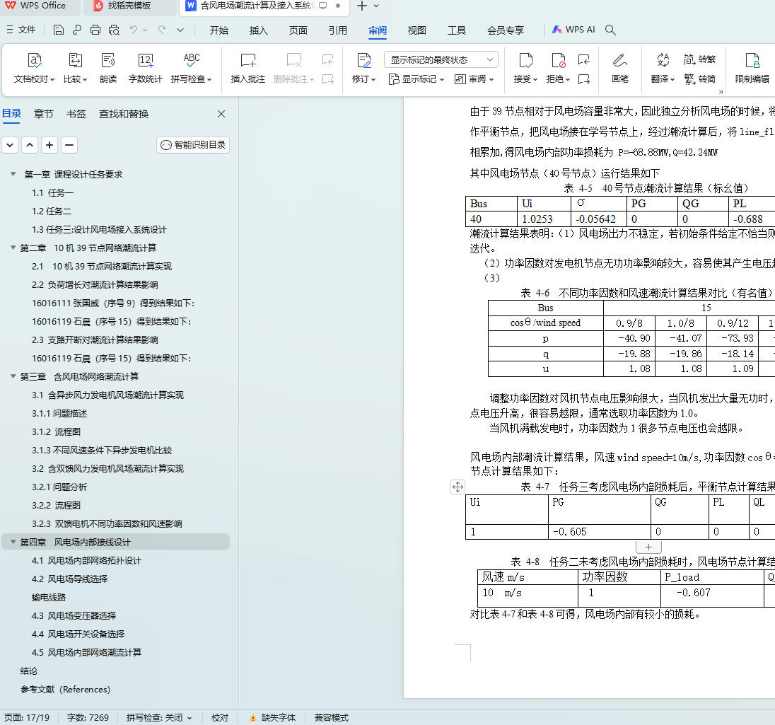 6. 计及风电场接入系统电气接线,计算潮流,验证设计结果的可行性。