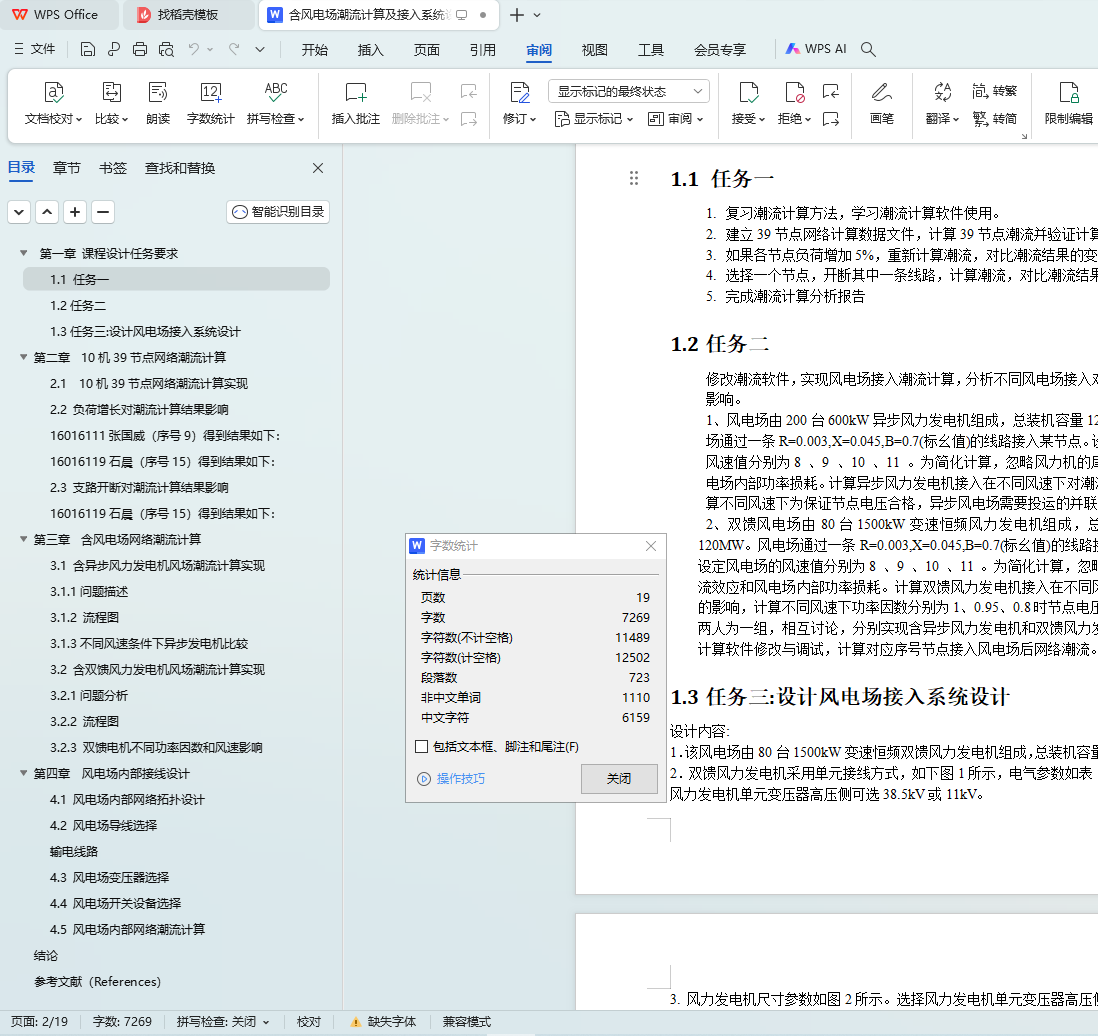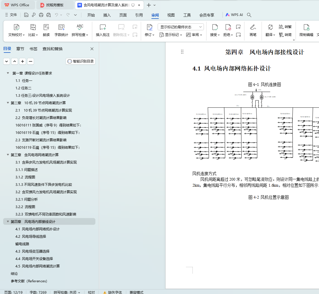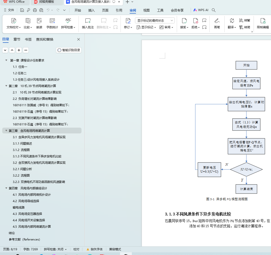 6. 计及风电场接入系统电气接线,计算潮流,验证设计结果的可行性。