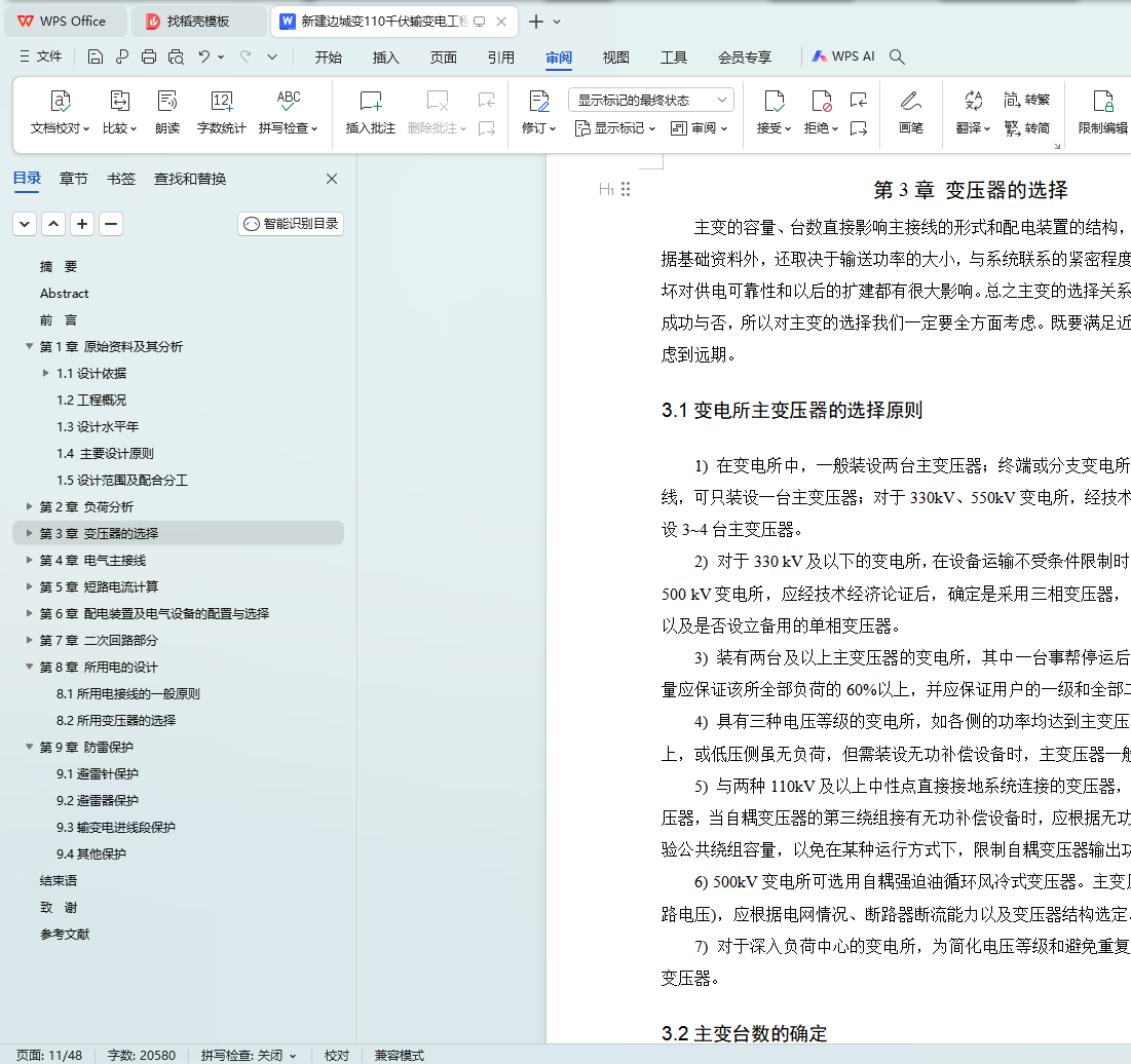 Key words: 110kV power transmission and transformation project; substation design; load analysis; transformer selection; electrical main wiring; short-circuit current calculation