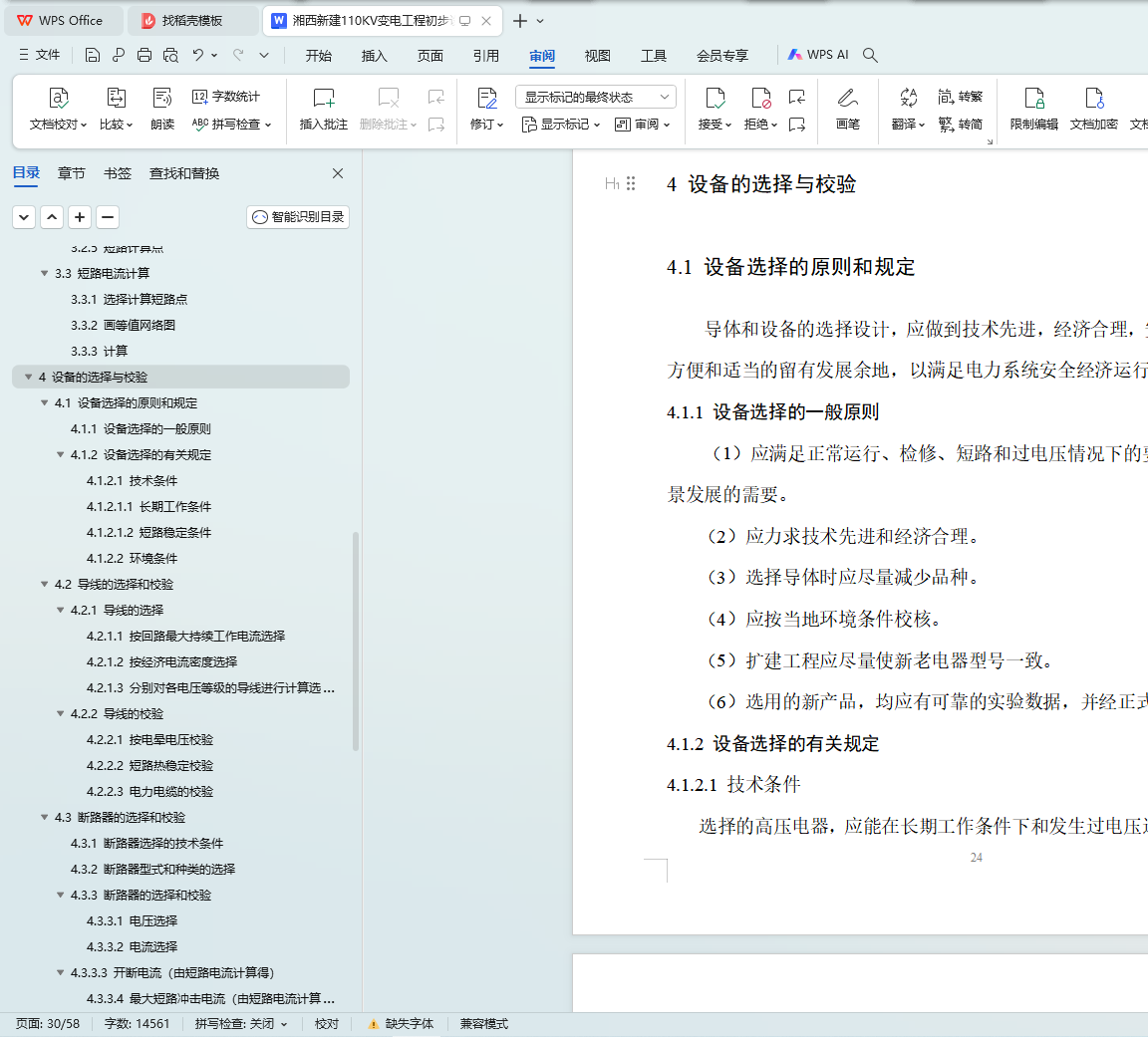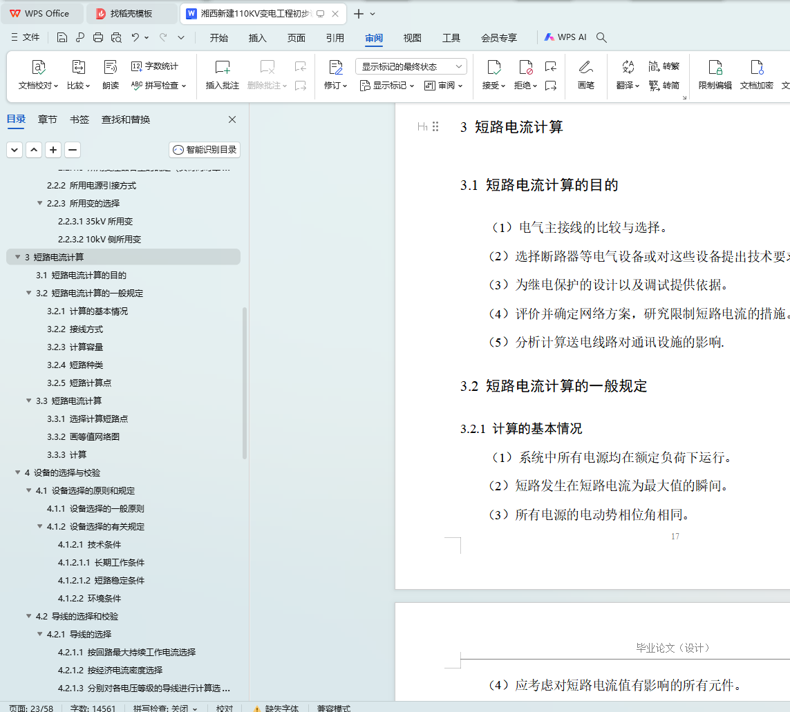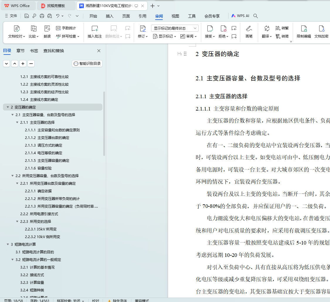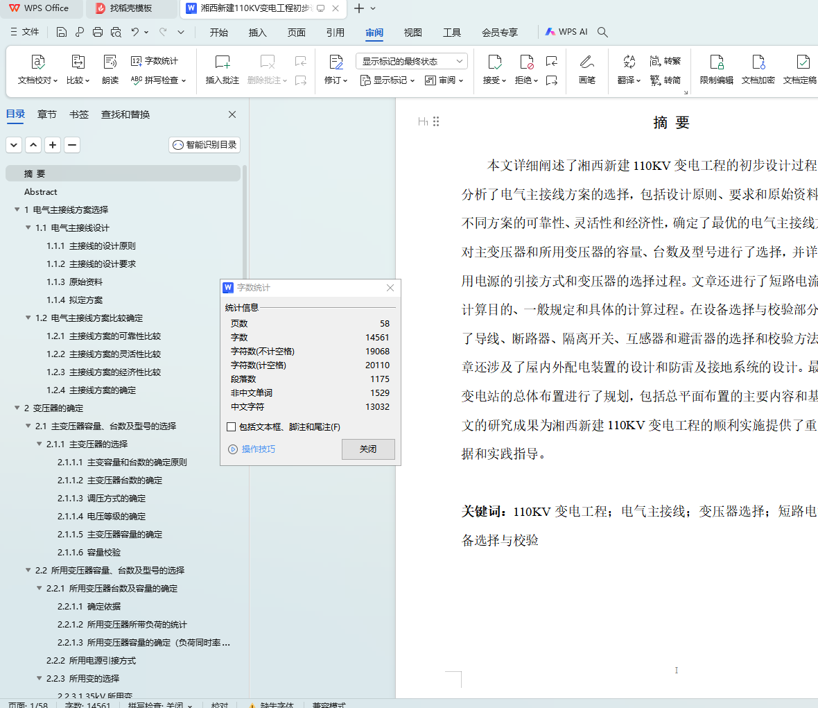 关键词:110KV变电工程;电气主接线;变压器选择;短路电流计算;设备选择与校验
