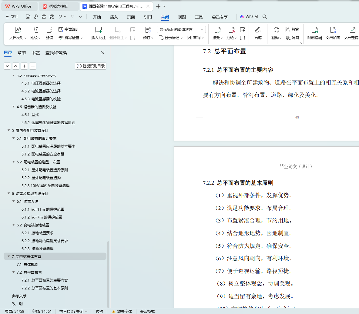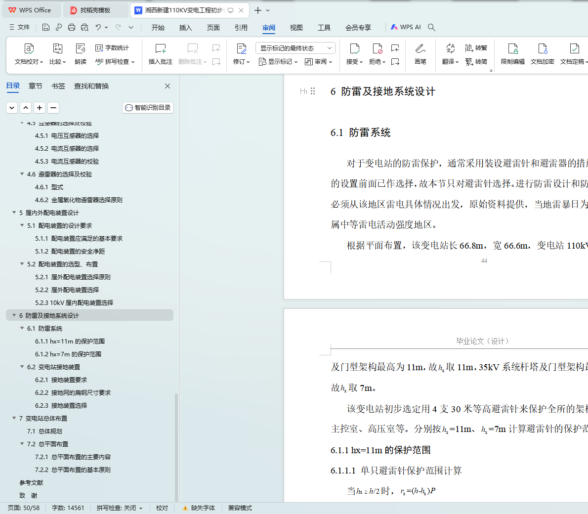 本文详细阐述了湘西新建110KV变电工程的初步设计过程。文章首先分析了电气主接线方案的选择,包括设计原则、要求和原始资料,通过比较不同方案的可靠性、灵活性和经济性,确定了最优的电气主接线方案。接着,对主变压器和所用变压器的容量、台数及型号进行了选择,并详细说明了所用电源的引接方式和变压器的选择过程。文章还进行了短路电流计算,包括计算目的、一般规定和具体的计算过程。在设备选择与校验部分,文章介绍了导线、断路器、隔离开关、互感器和避雷器的选择和校验方法。此外,文章还涉及了屋内外配电装置的设计和防雷及接地系统的设计。最后,文章对变电站的总体布置进行了规划,包括总平面布置的主要内容和基本原则。本文的研究成果为湘西新建110KV变电工程的顺利实施提供了重要的理论依据和实践指导。