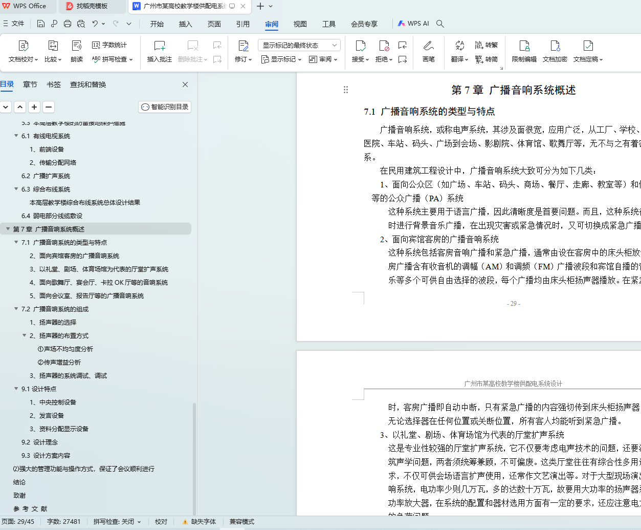 强电部分的设计包括低压配电系统,动力照明干线系统,配电箱系统和导线电缆的敷设。强电部分是建筑电气设计的基础和主干部分,建筑电气的重要性和可靠性都取决于强电部分设计的好坏。而弱电部分包括有线电视及卫星电视系统,通信系统,广播扩声系统,火灾自动报警与消防联动系统还有综合布线系统,目前设计中比较深化的是火灾报警及消防联动系统与综合布线系统两部分。随着建筑智能化水平的提高,弱电部分的系统增加很多,弱电系统占基建投资的比率也越来越高,因此设计好弱电的各个子系统,对节约投资、提高智能化水平是有重要意义的。