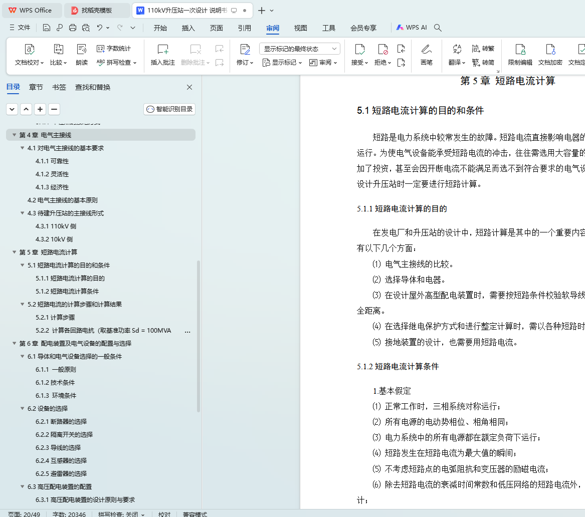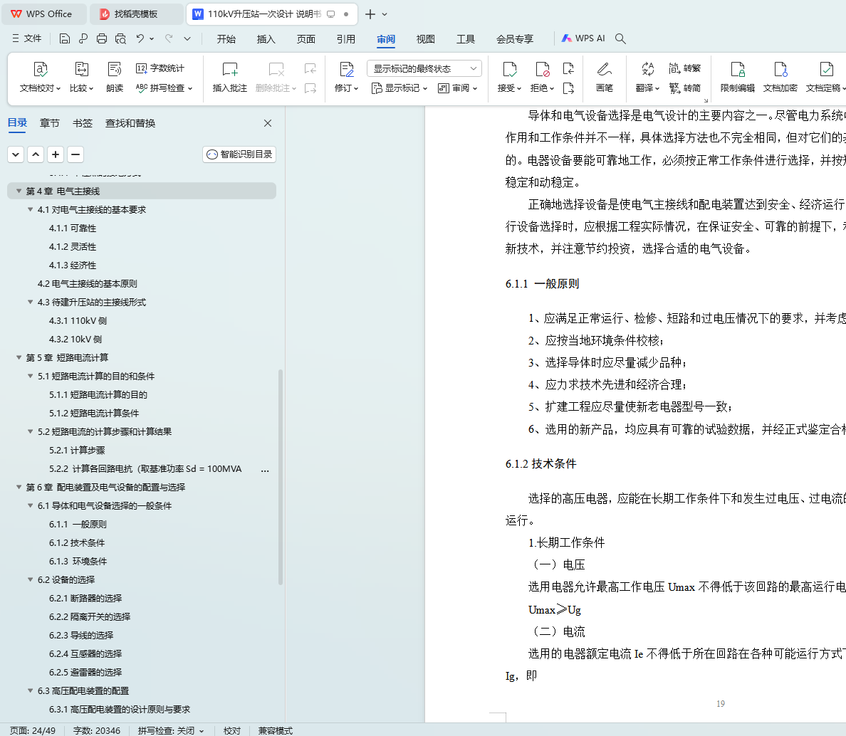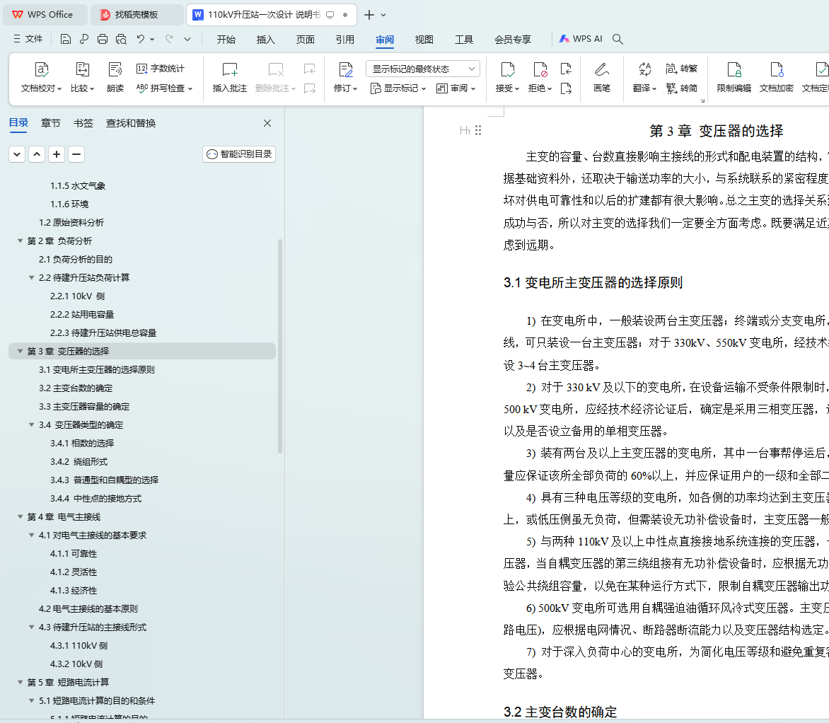 kV paper is mainly about the design of the electrical primary part of the 110 substation, which includes the reasonable selection of the number, model and capacity of the main transformer, the optimal selection of the wiring mode of each voltage grade, the calculation of the short circuit current, the selection of the equipment according to the rated voltage of each grade and the maximum continuous working current, and the final check work.