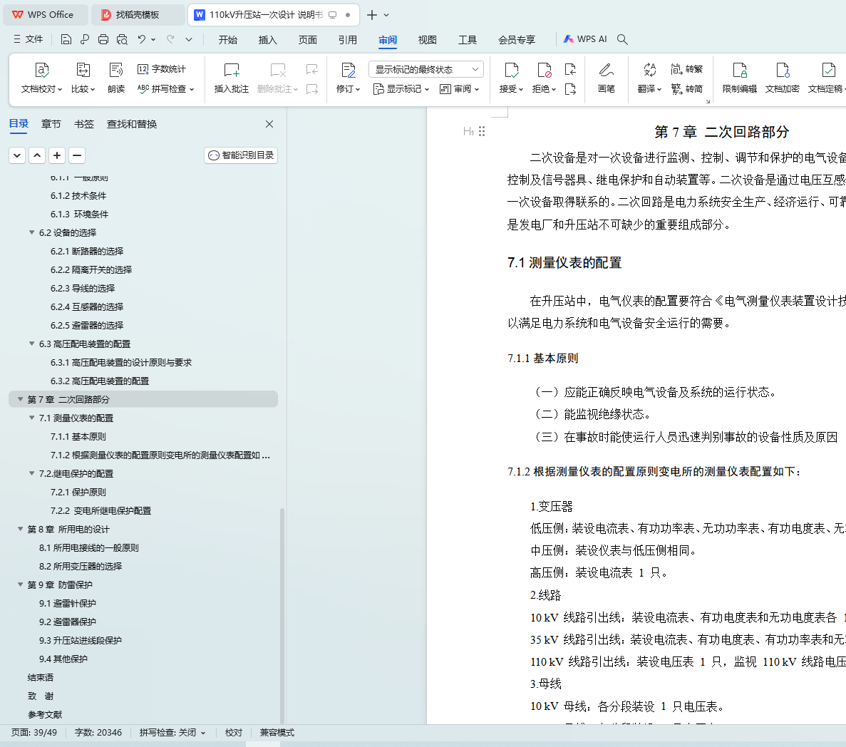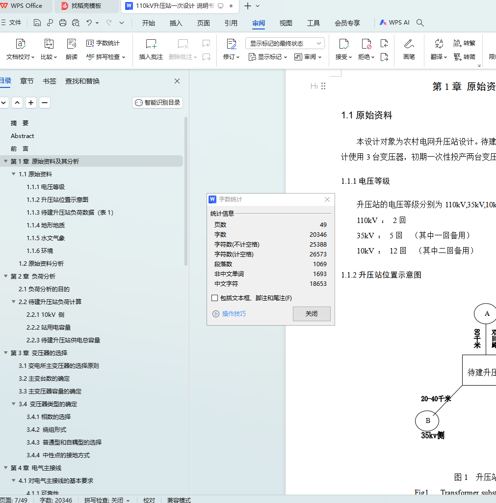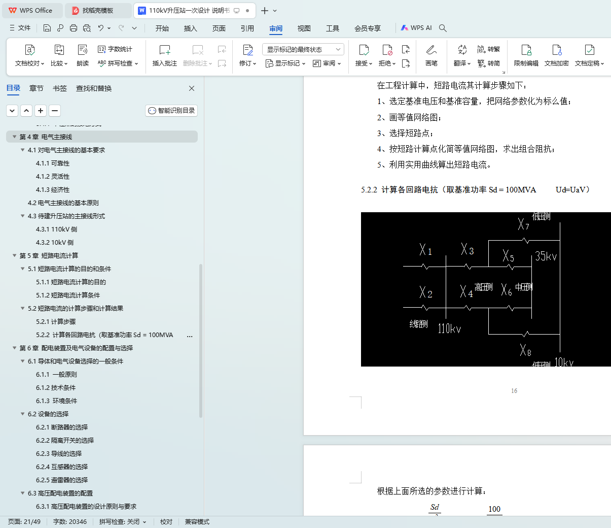 kV paper is mainly about the design of the electrical primary part of the 110 substation, which includes the reasonable selection of the number, model and capacity of the main transformer, the optimal selection of the wiring mode of each voltage grade, the calculation of the short circuit current, the selection of the equipment according to the rated voltage of each grade and the maximum continuous working current, and the final check work.