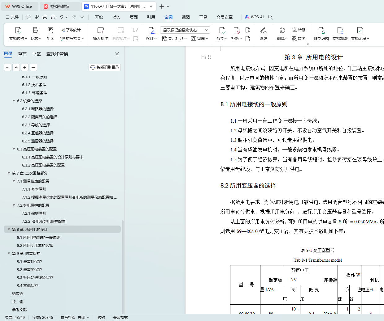8.2所用变压器的选择