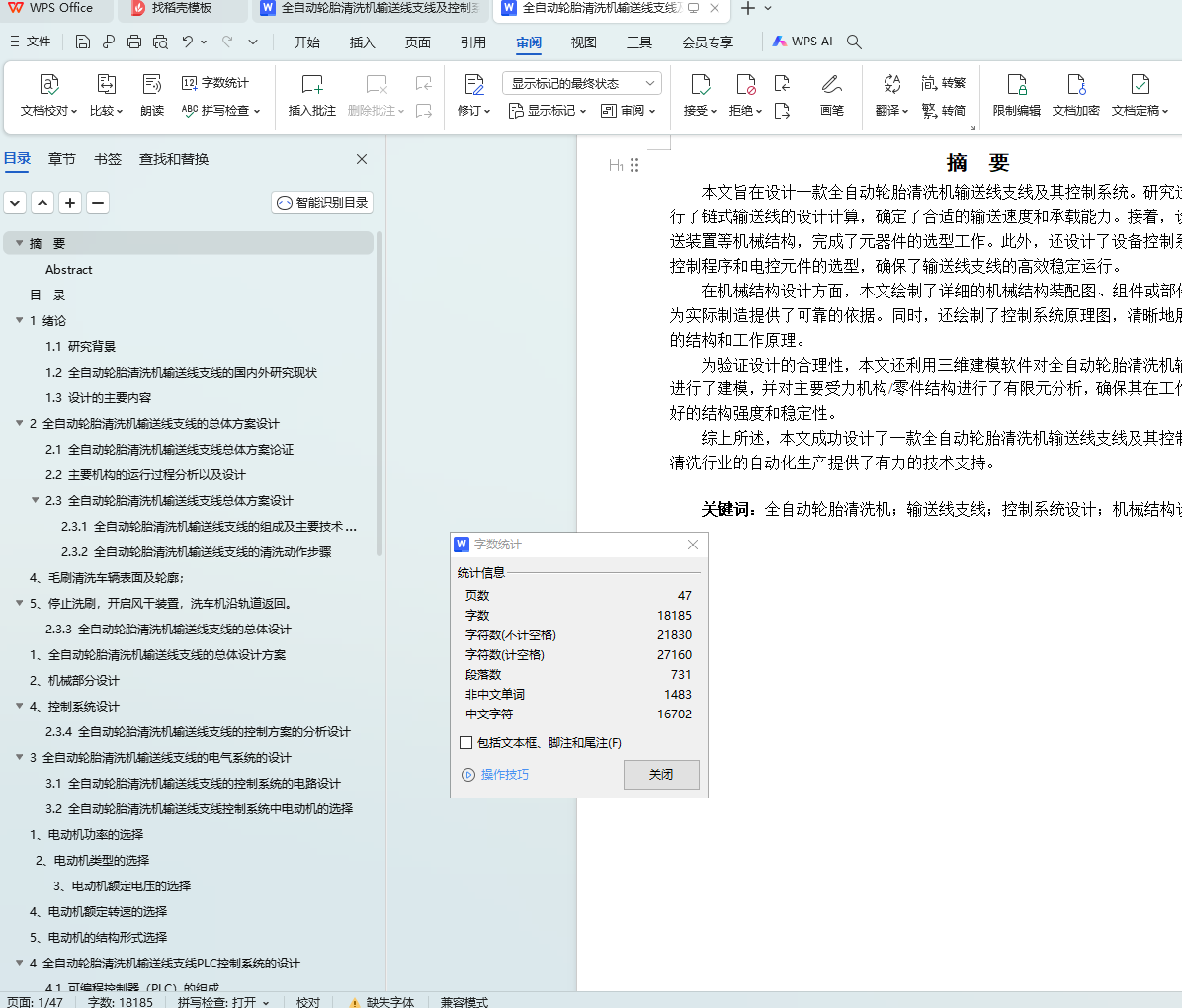Key words: automatic tire washer; conveying line feeder; control system design; mechanical structure design; PLC