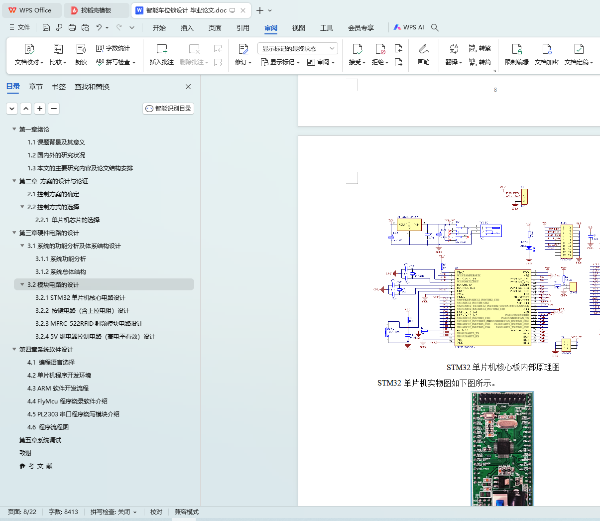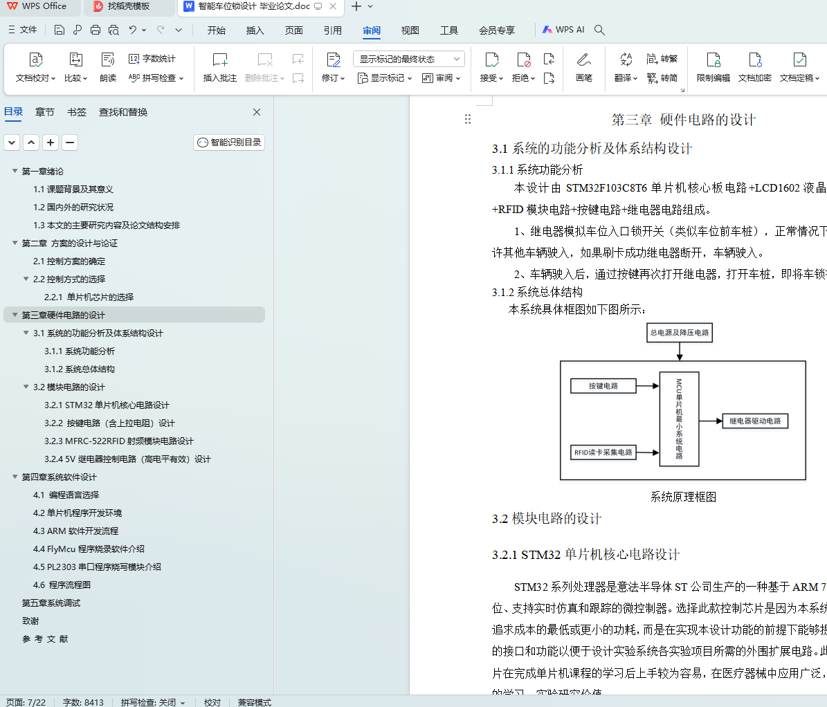 本设计由STM32F103C8T6单片机核心板电路、LCD1602液晶显示电路、RFID模块电路、按键电路和继电器电路组成。通过继电器模拟车位入口锁开关(类似车位前车桩),正常情况下闭合不允许其他车辆驶入,如果刷卡成功继电器断开,车辆驶入。