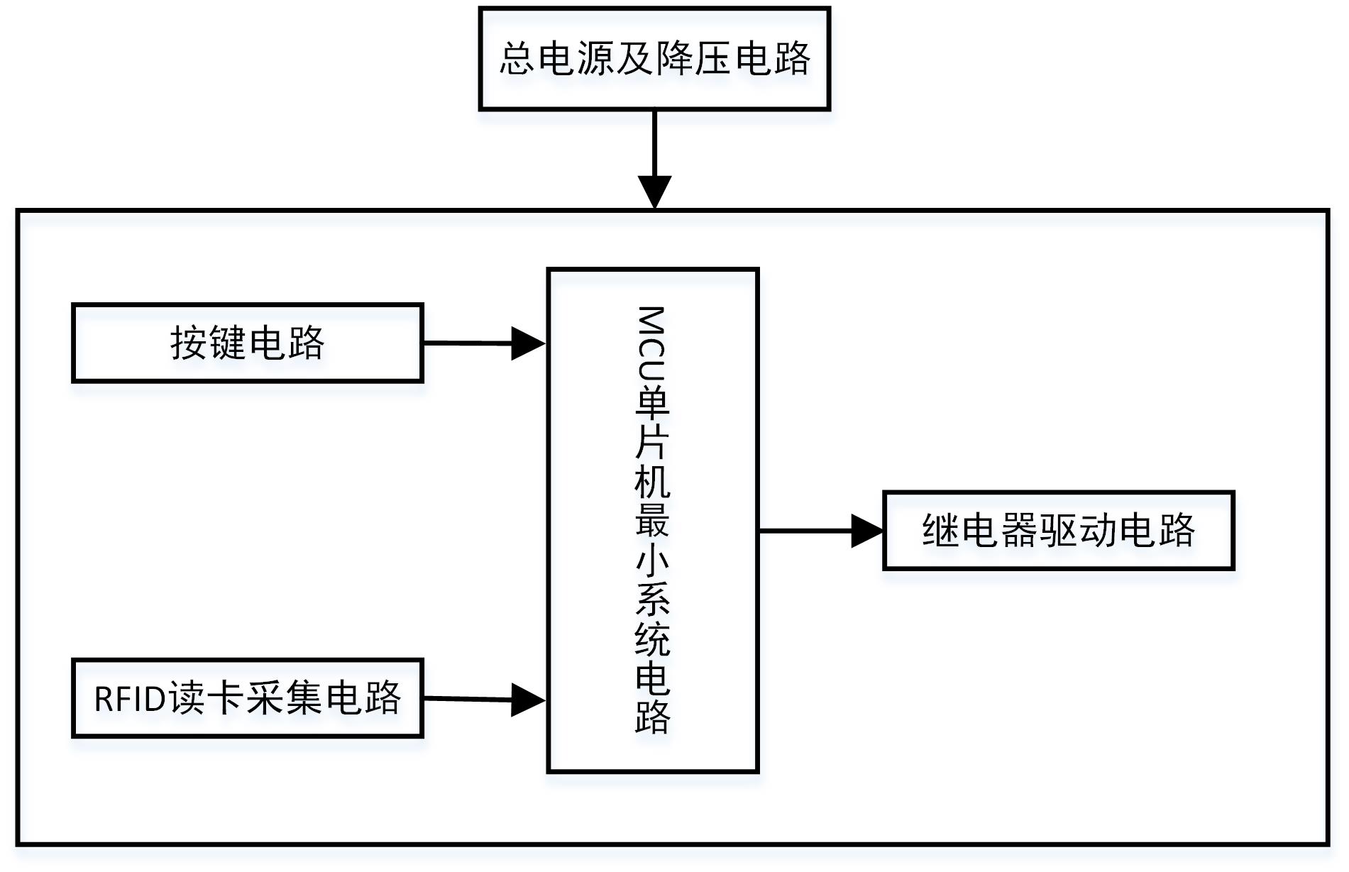 本设计由STM32F103C8T6单片机核心板电路、LCD1602液晶显示电路、RFID模块电路、按键电路和继电器电路组成。通过继电器模拟车位入口锁开关(类似车位前车桩),正常情况下闭合不允许其他车辆驶入,如果刷卡成功继电器断开,车辆驶入。