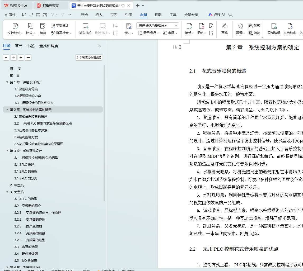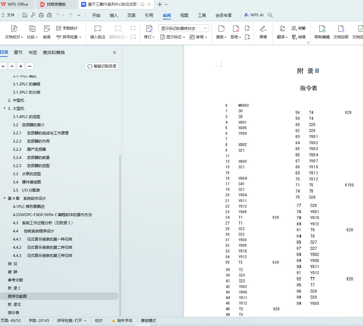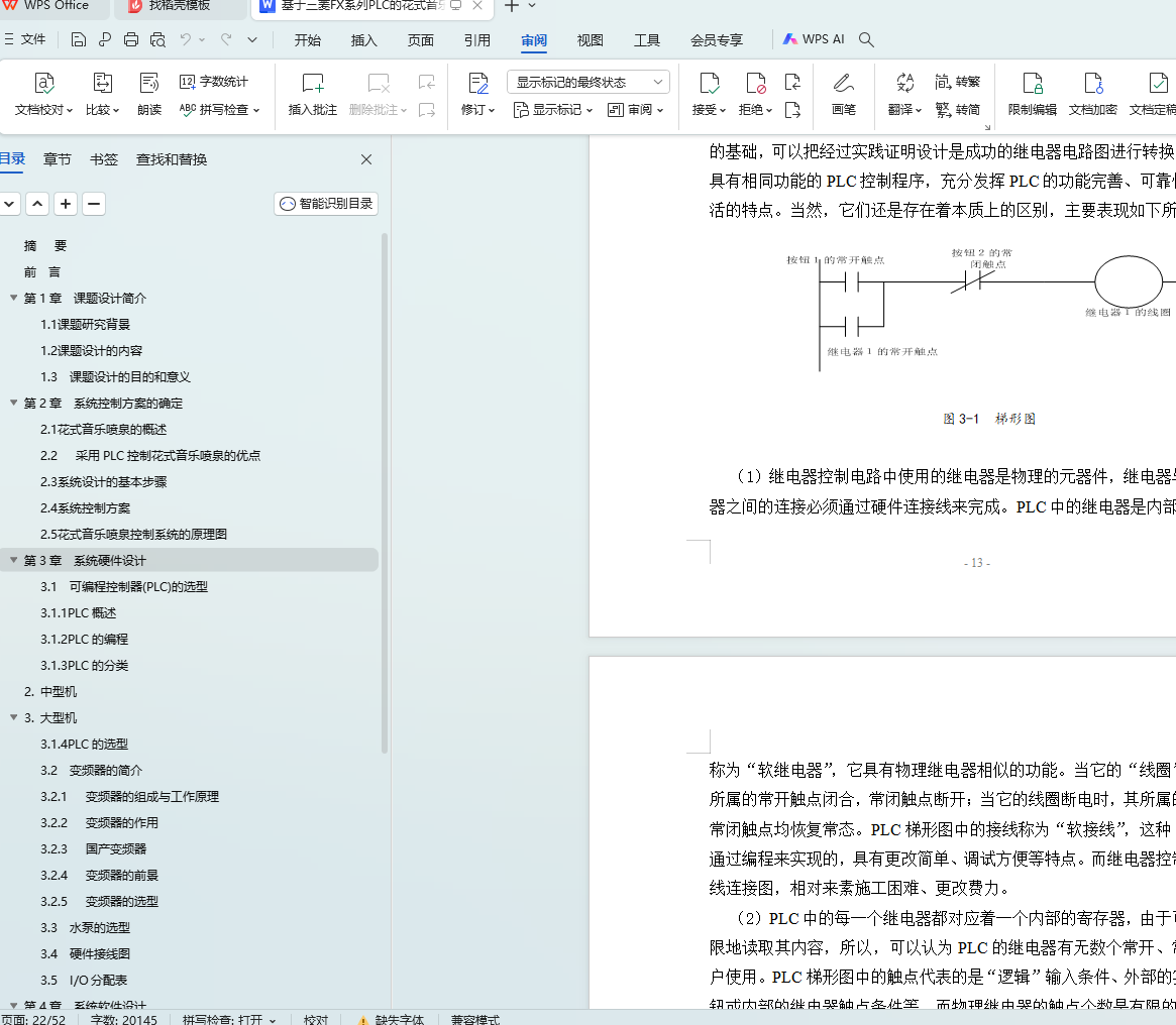 关键字:PLC,花式音乐喷泉,梯形图,变频器
