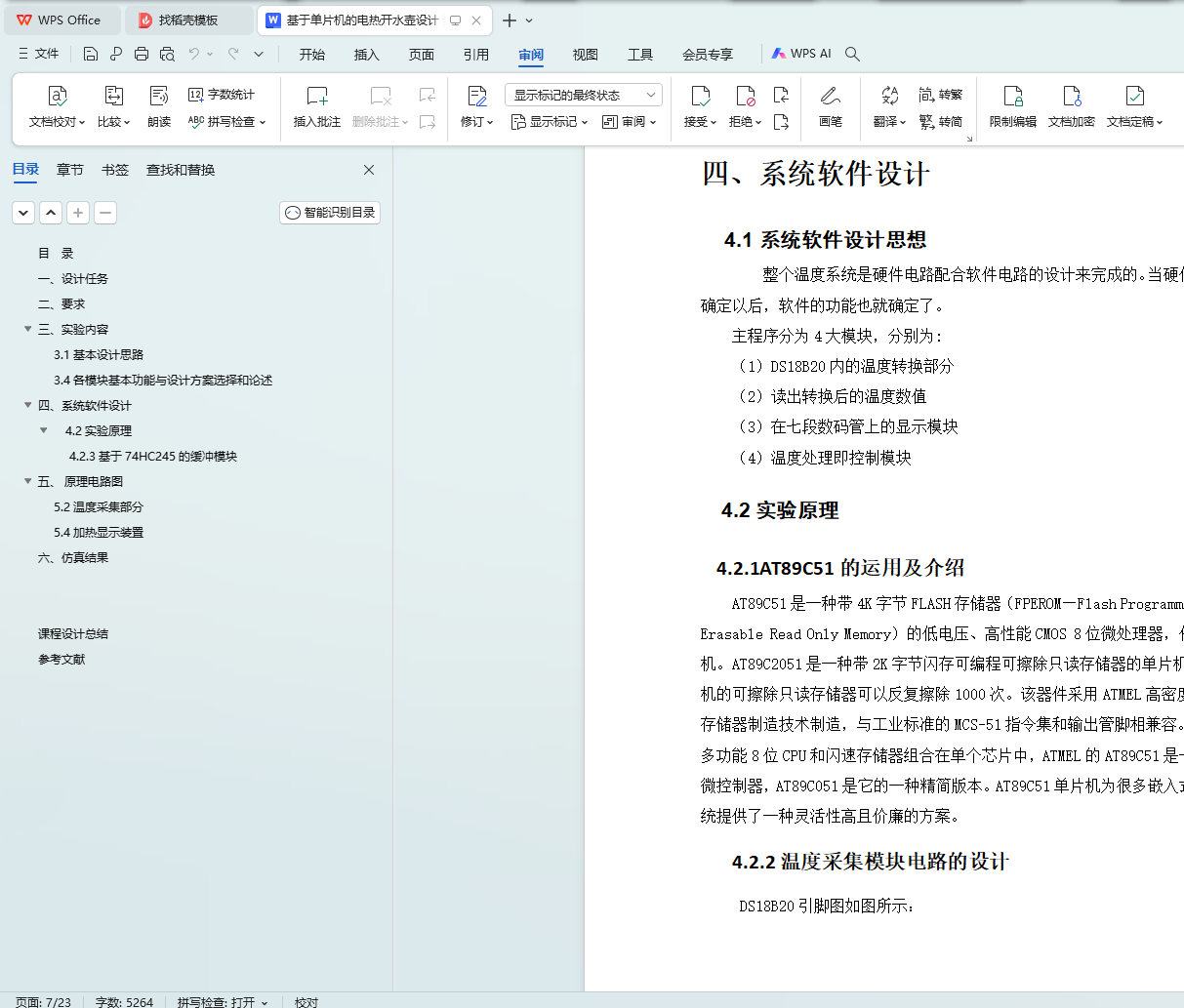 本次课程设计的内容是使用AT89C51单片机最小系统设计的电热开水壶设计,系统以单片机为主控单元,主要用于对温度信号的采集。