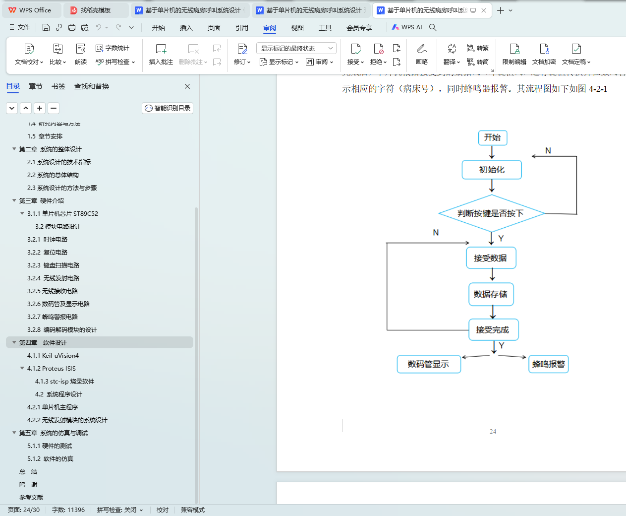 关键词:无线病房呼叫系统;ST89C52芯片;单片机;蜂鸣警报;Keil uVision4