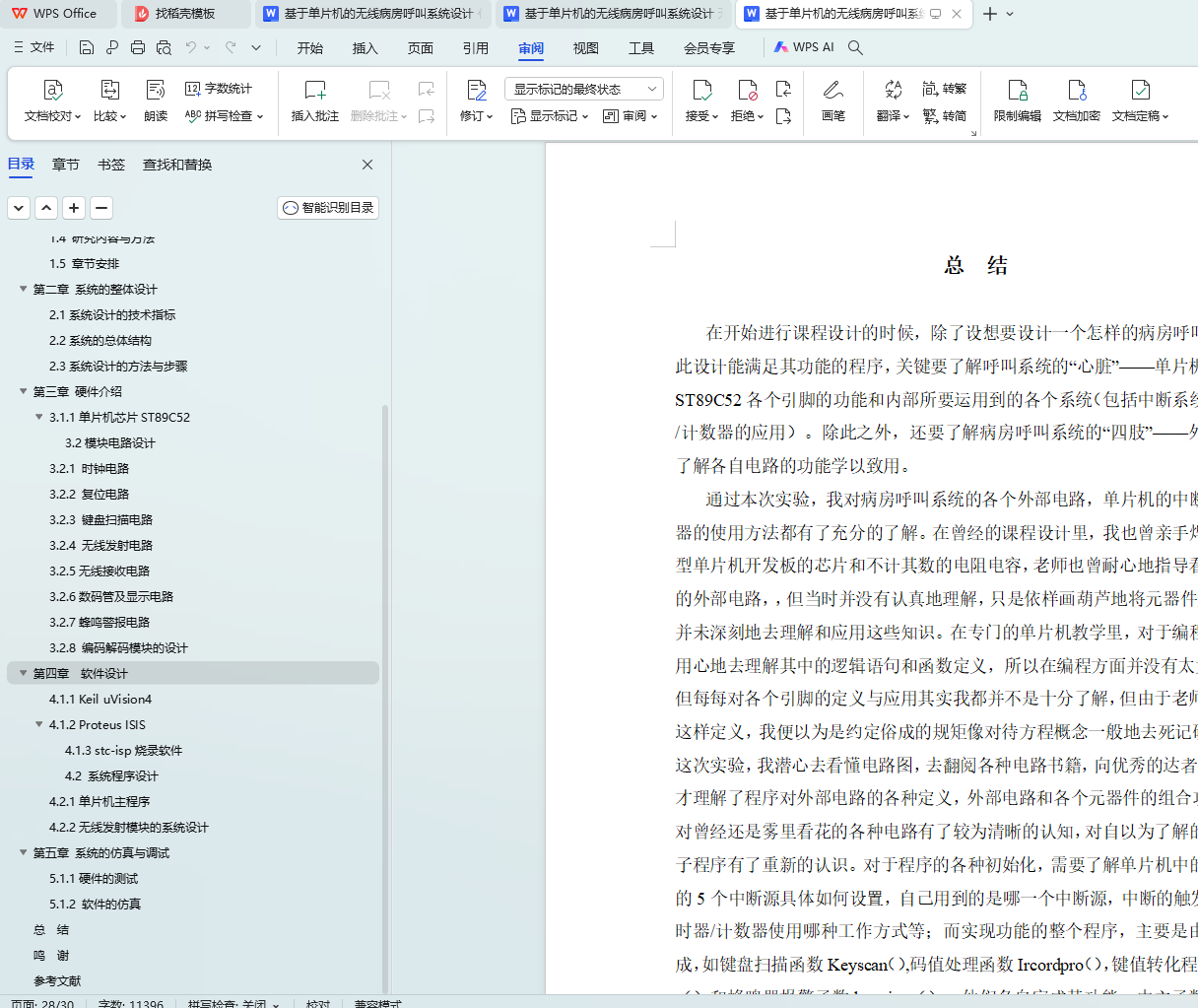 本研究设计了一种基于单片机的无线病房呼叫系统。该系统以ST89C52芯片为核心,配以多种外围电路,如时钟电路、复位电路、键盘扫描电路、无线射频接受电路、无线射频发射电路、数码管显示电路和蜂鸣警报电路。通过Keil uVision4、Proteus ISIS和stc-isp烧录软件进行软件程序开发。该系统旨在提高医院病房的通讯效率,方便病人与医护人员之间的信息传递,为病患提供及时、有效的服务。无线通信技术在该系统中的应用,大大降低了布线的复杂性和成本,增强了系统的灵活性和可移动性。本设计的实施对于提升医疗服务的效率和质量具有重要意义。