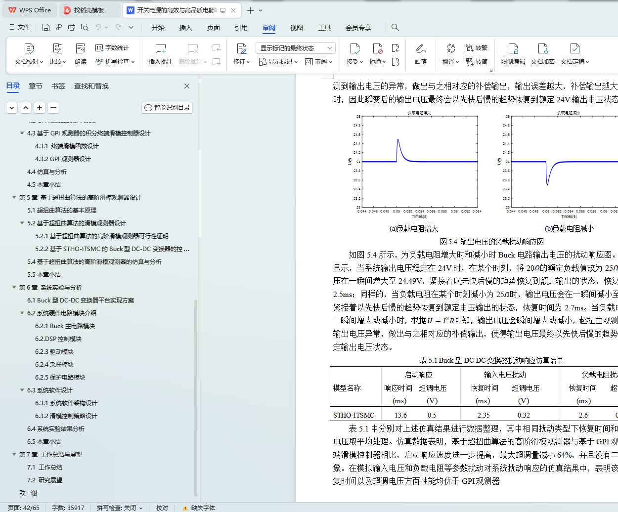 在此基础上,本文提出了两种新的Buck电路控制策略:基于GPI观测器的积分终端滑模控制器(GPI-ITSMC)和基于超扭曲算法的高阶滑模观测器(STHO-ITSMC)。通过仿真分析,验证了这两种控制策略相较于经典滑模控制器具有更快的系统收敛速度、更强的抑制抖振能力和更强的鲁棒性。其中,基于超扭曲算法的高阶滑模观测器(STHO-ITSMC)表现更加卓越。