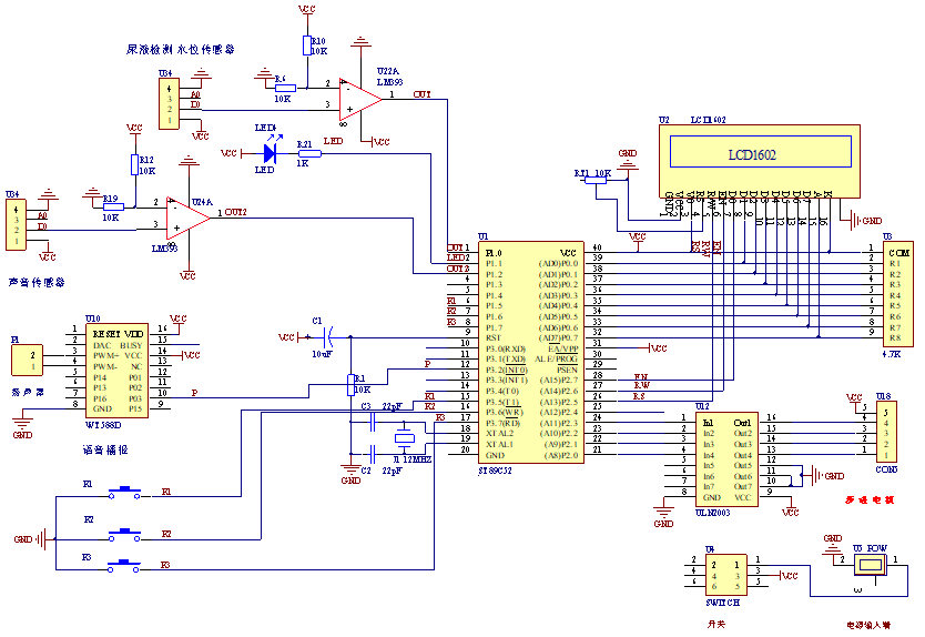 【关键词】单片机;声音控制电路;语音播报;湿度采集;液晶显示